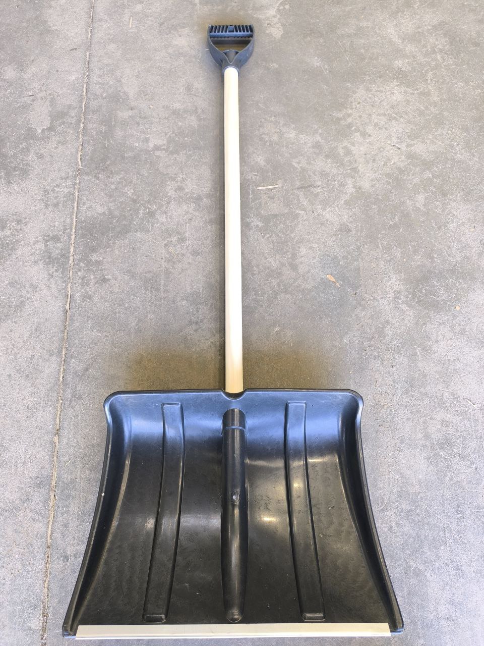 Снеговая лопата БОГАТЫРЬ №2 пластмассовая с оц.планкой 480х360мм, ø-32 с дер. черенком и V-руч 02039