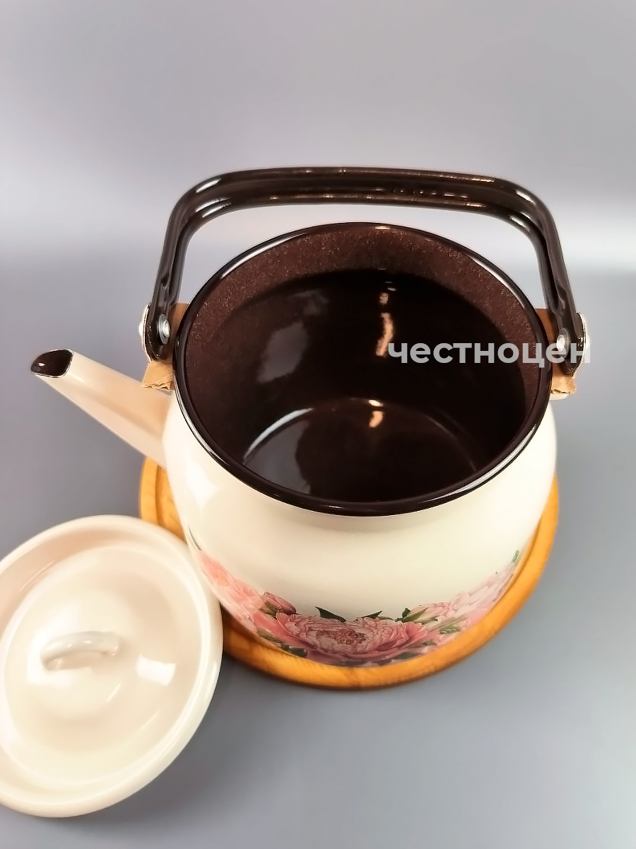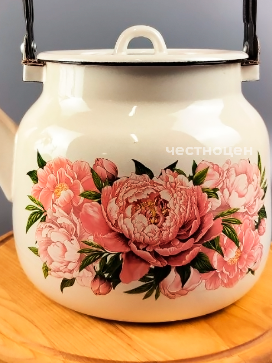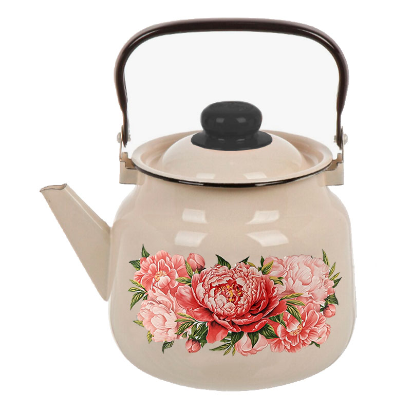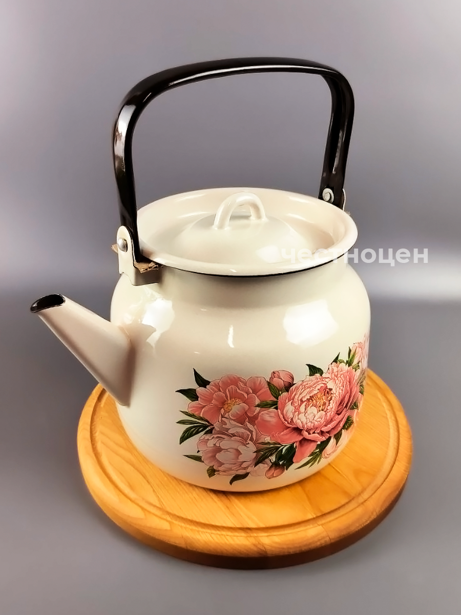 Очень сложно представить себе человека, который не любил бы горячие напитки. Даже те, кому не сильно нравится вкус чая и кофе, хотя бы раз в день выпивают по чашке одного из этих эликсиров бодрости и хорошего настроения. Для того чтобы их заварить, необходимо вскипятить воду. Неплохой помощник в этом деле-чайник эмалированный. Эмалированный чайник является абсолютно безопасным для кипячения питьевой воды. Он не искажает вкус чая и не способен вызвать аллергии или пищевого отравления. Чайник эмалированный Букет пионов 3,5 литра.Изготовлен из высококачественной стали с эмалированным покрытием. Эмалевое покрытие, являясь стекольной массой, не вызывает аллергию и надежно защищает пищу от контакта с металлом. Кроме того, такое покрытие долговечно, оно устойчиво к механическому воздействию, не царапается и не сходит, а стальная основа практически не подвержена механической деформации, благодаря чему срок эксплуатации увеличивается. Крышка чайника плотно прилегает к краю.