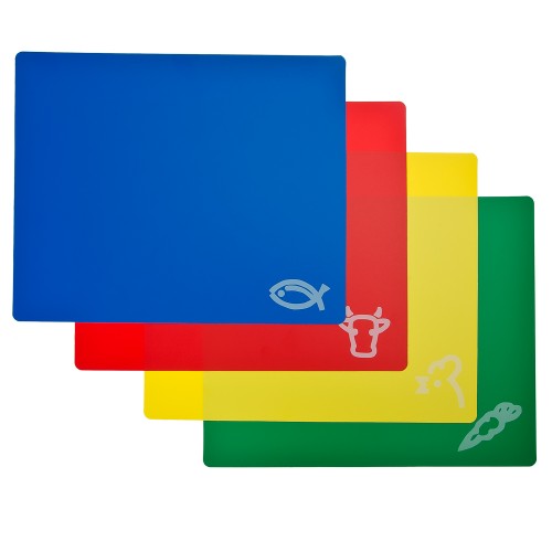 Набор из 4 разделочных досок — универсальный помощник на кухне. Нарезка фруктов, шинкование овощей, разделка рыбы и птицы — на прямоугольной пластиковой разделочной доске легко выполняются любые кулинарные задания. Гигиеничный материал обладает антимикробными свойствами и высокой прочностью. После использования аксессуар достаточно сполоснуть теплой водой и высушить в вертикальном положении.
