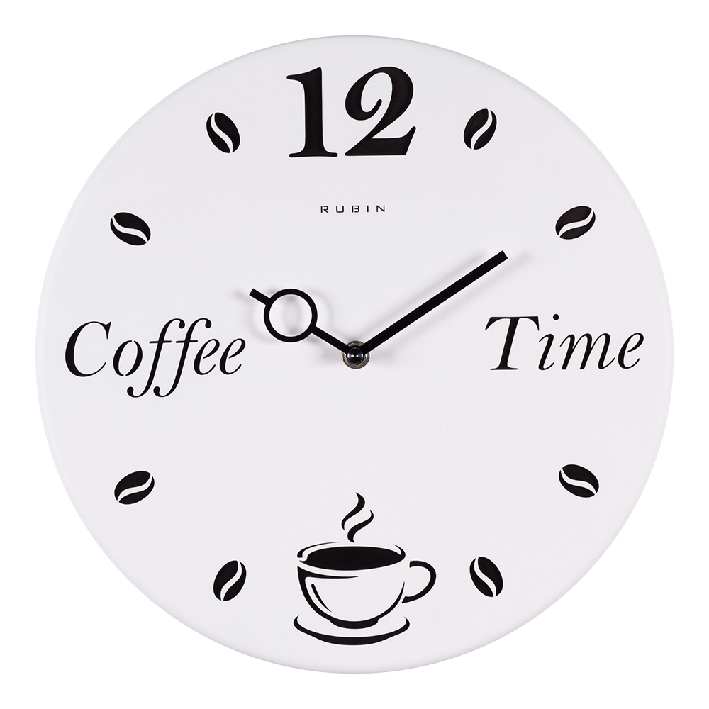 Часы настенные из металла, 32см открытая стрелка белый+черный "Coffe Time" "Рубин" 3235-001,,