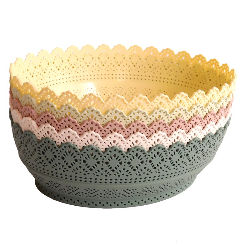 Корзинка кружевная овальная – это идеальное решение для вашего дома, это один из наиболее востребованных и распространенных предметов кухонного интерьера. Благодаря ажурному дизайну, нейтральным цветовым исполнениям и удобстве в использовании — они найдут достойное применение на кухне. Она идеально подходит для сервировки стола как на свежем воздухе, так и в столовой. Изготовленная из гигиеничных материалов корзинка не боится влаги, ее можно неоднократно мыть, в том числе с использованием бытовых средств. Корзинка произведена из безвредного для здоровья пластика и подходит для пищевых продуктов. В упаковке представлены различные цветовые исполнения данного изделия.Цвет микс.