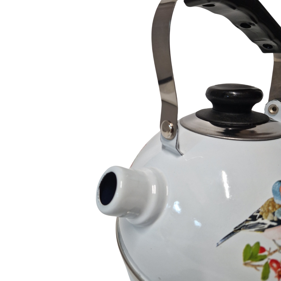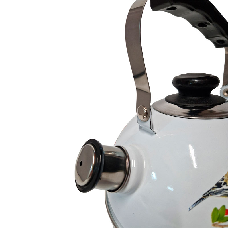 Эмалированный чайник со свистком - это незаменимый помощник на любой кухне. Он изготовлен из качественной эмалированной стали, которая обеспечивает прочность и долговечность. Чайник имеет удобную ручку и крышку. Встроенный свисток предупреждает о закипании воды, что очень удобно и практично. Эмалированное покрытие защищает от коррозии и сохраняет полезные свойства воды. Разнообразие дизайнов и объемов чайника позволяет выбрать подходящий вариант для любой кухни. Чайник эмалированный со свистком. Подходит для всех видов плит: газовые, индукционные, электрические, стекло-керамические. Внешнее трехслойное эмалевое покрытие не вступает во взаимодействие с пищевыми продуктами, защищает сталь от коррозии, придает посуде гладкую стекловидную поверхность, устойчива к высоким температурам и надежно защищает от кислот и щелочей. Материал чайника - высококачественная нержавеющая сталь. Изделие произведено в России. Свисток съемный из нержавеющей стали. Крышка плотно прилегает к краю, позволяющая долго не остывать воде.