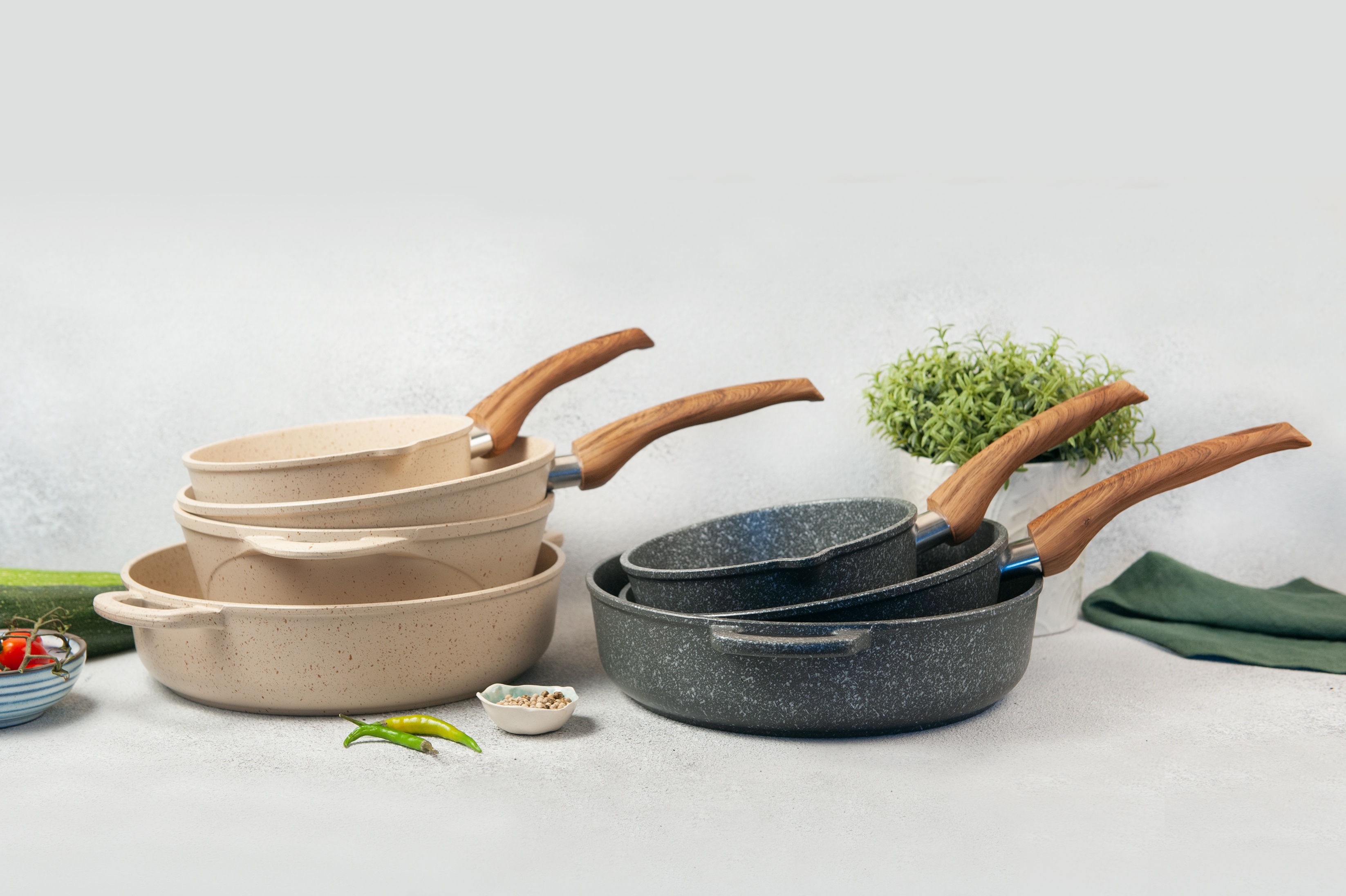 Антипригарной посуды «Гармония», созданную для тех, кто ценит комфорт и стиль на кухне. Эта коллекция воплощает идеальное сочетание функциональности и элегантности, делая процесс приготовления пищи не только простым и приятным, но и по-настоящему эстетичным.