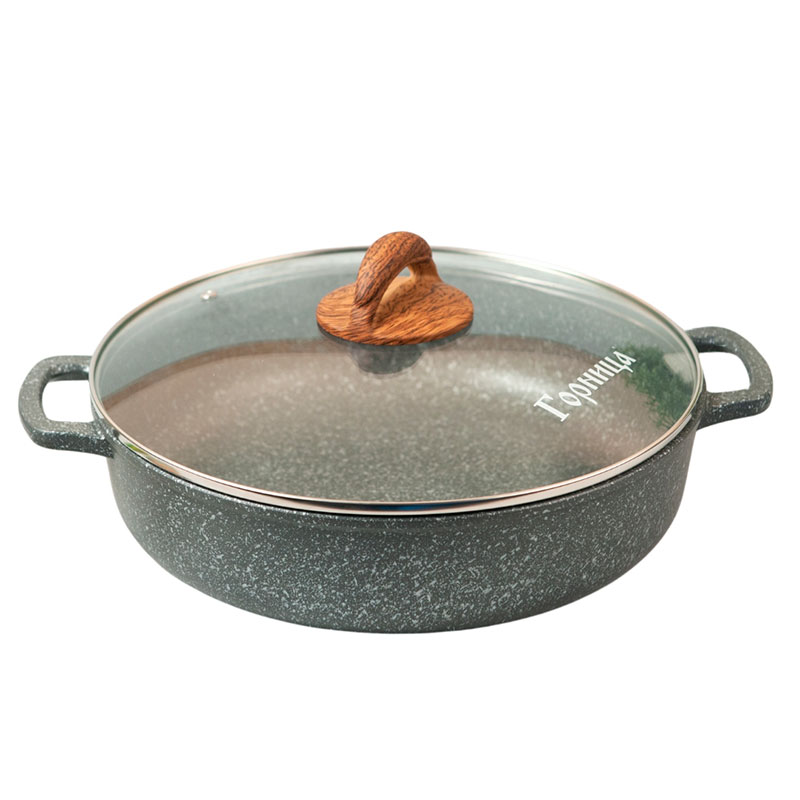 Жаровня 280/70мм 3,5л. Гармония МРАМОР лит/руч. с кр. (п/у), ж2832мр