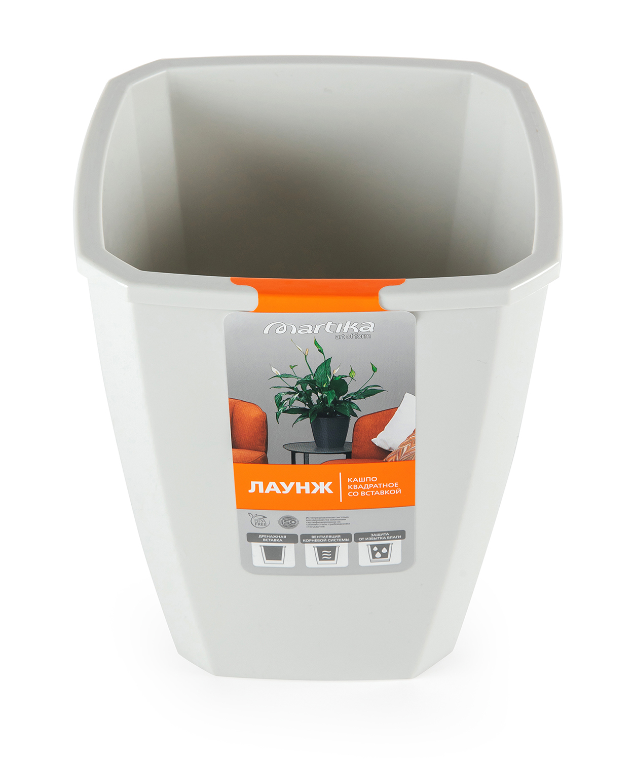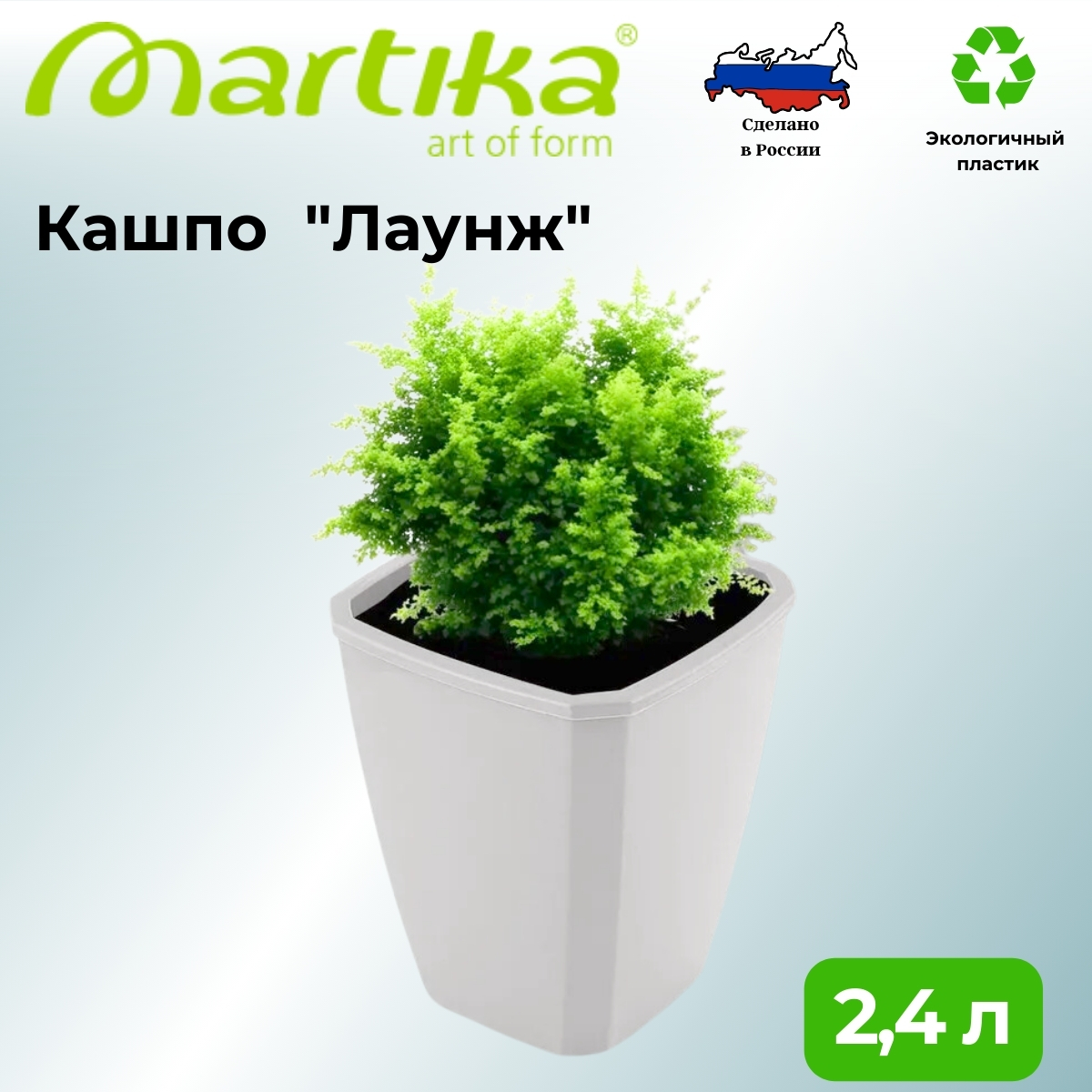 Кашпо квадратное «Лаунж» - это современное и функциональное решение для озеленения интерьера. Кашпо представлено в двух объемах 2,4 литра (вставка 1,6 л) и 4 литра (вставка 2,8 л). Дренажная вставка помогает регулировать уровень влажности в почве, обеспечивая равномерное распределение влаги по всему горшку и вентиляцию корневой системы. Такое кашпо уместно везде - в небольших квартирах, в больших домах и для озеленения офисов.