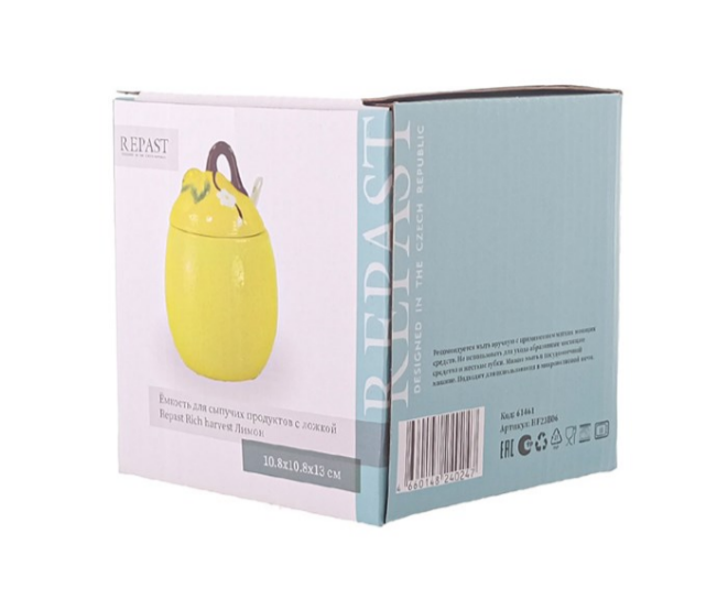 Ёмкость для сыпучих продуктов с ложкой Repast Rich harvest Лимон 10.8*10.8*13 см, HF23B06 61461