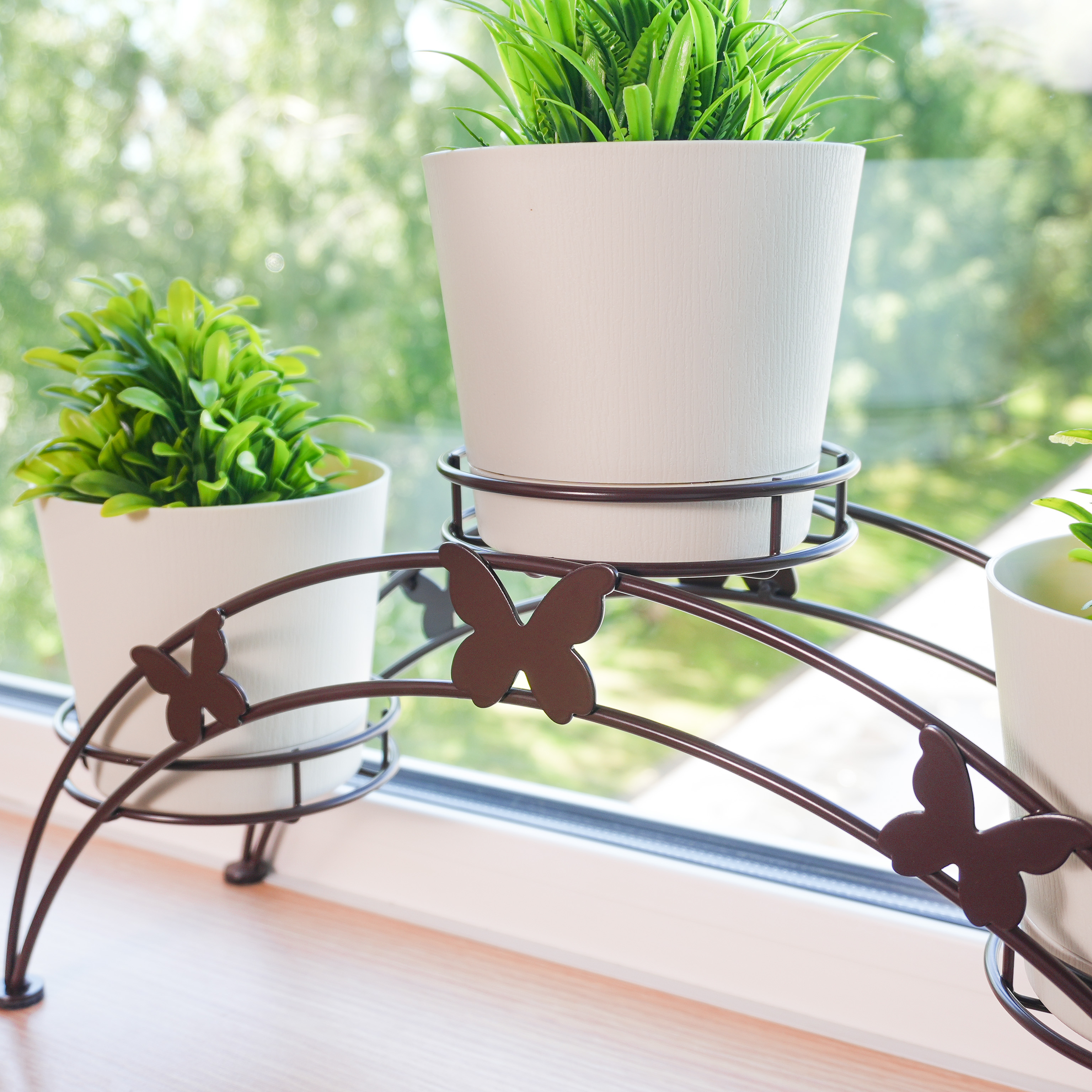 Подставка под цветы "Арка 3" от российского производителя "ЗМИ" создана для хранения комнатных цветов и растений. Она отлично подойдет всем любителям садоводства. Цветочница имеет классический внешний вид и подойдет для современных интерьеров комнаты, дачи или загородного дома. Ее можно использовать как в домашних помещениях, так и в тепличных и оранжереях. Модель подходит как для пола, так и для подоконника. Держатель для кашпо организует пространство и станет отличным подарком по любому поводу. Цветочная полка не займет много места, на ней можно расположить 3 горшка с растениями. Допустимая нагрузка на каждую корзину до 2 кг. Диаметр дна корзинки 11,5 см. Подставка представляет собой прочную цельно-сварную конструкцию из металла, покрытую полимерно-порошковым покрытием. Опора для растений продаётся напрямую от производителя, что гарантирует качество и выгодную цену.