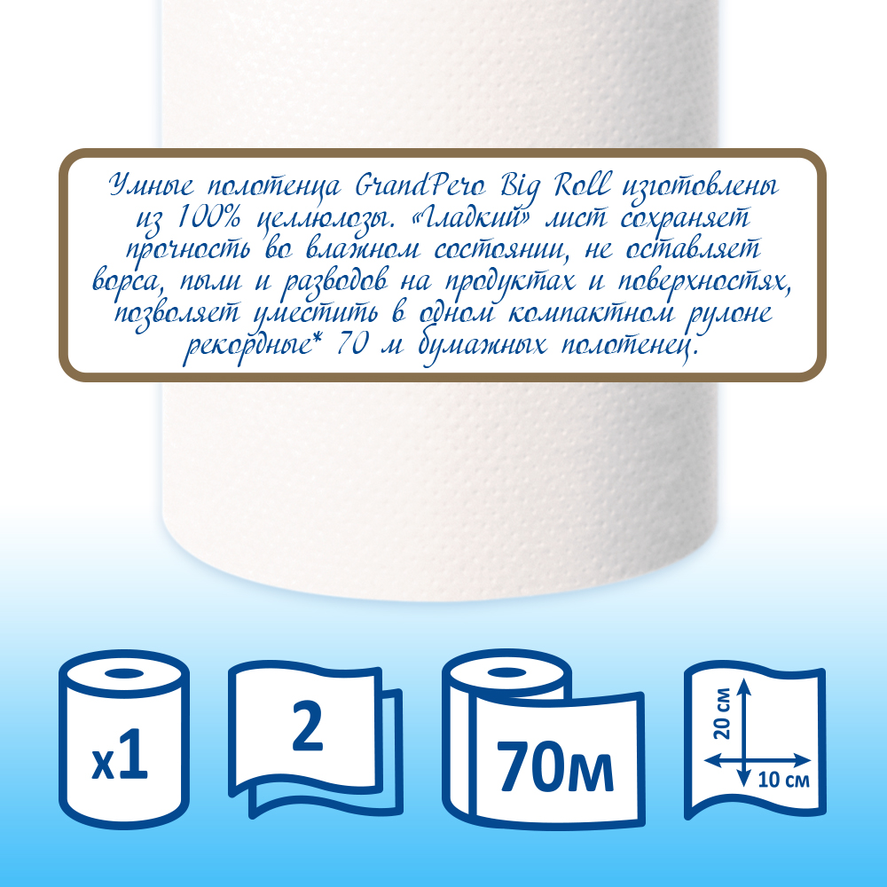 Полотенце бумажное GrandPero 70м цв. белый (3385)