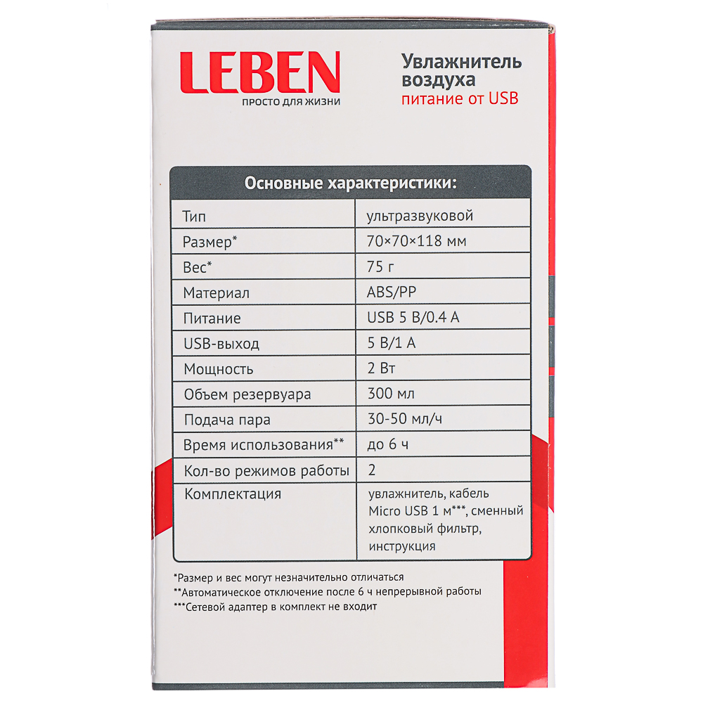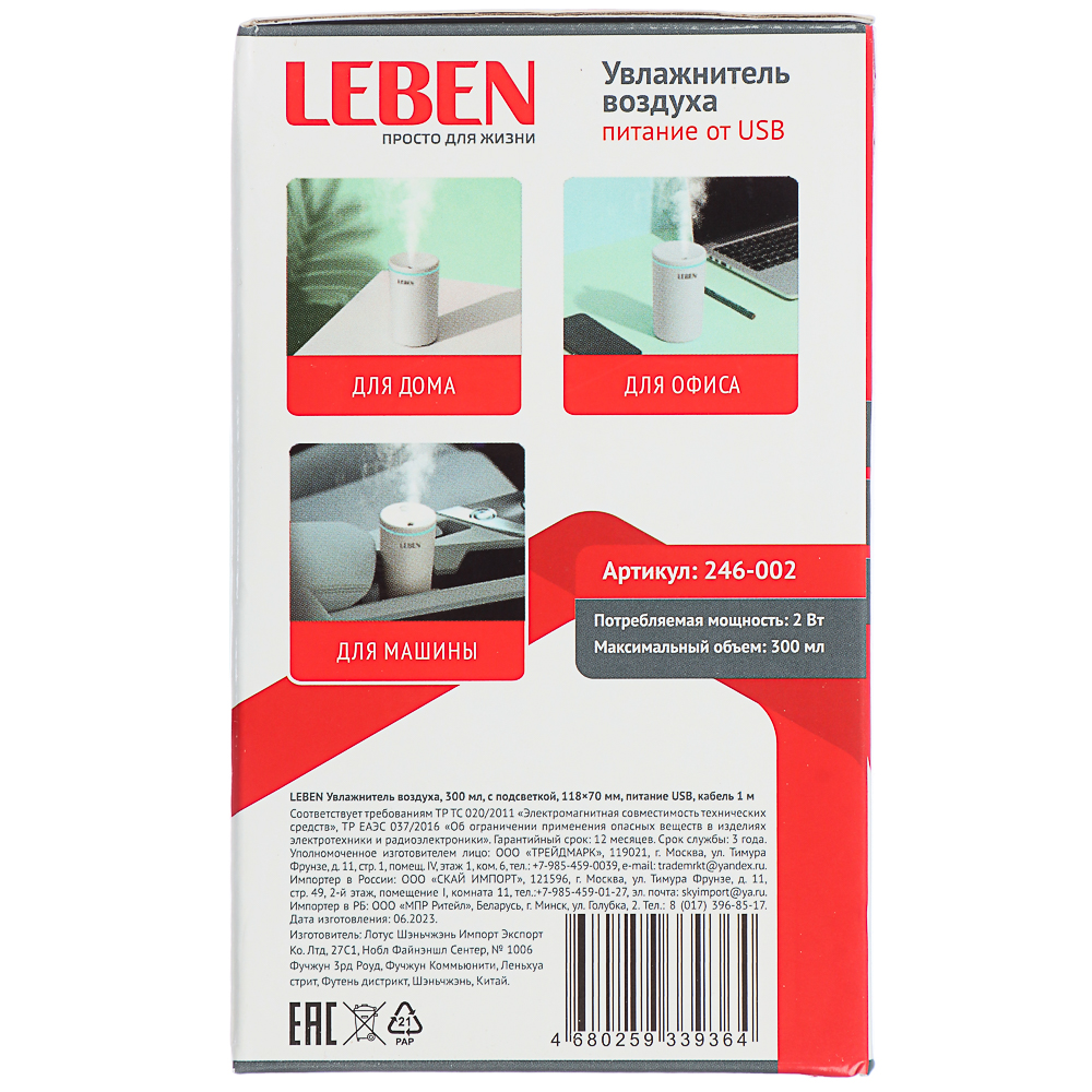 Увлажнитель воздуха 300мл с подсветкой 118*70мм LEBEN 246-002