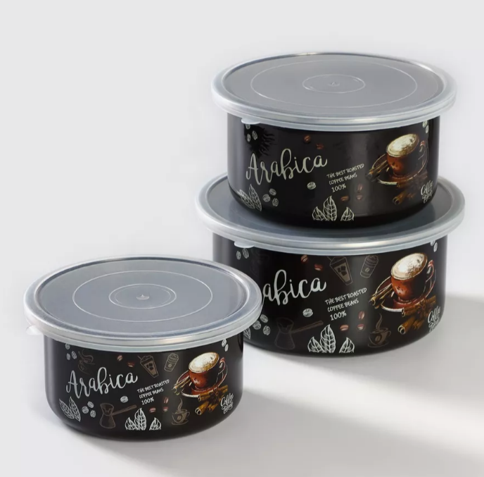 Набор салатников "Арабика" от КМЗ - это три круглых салатника с полиэтиленовыми крышками, которые станут незаменимыми помощниками на вашей кухне.