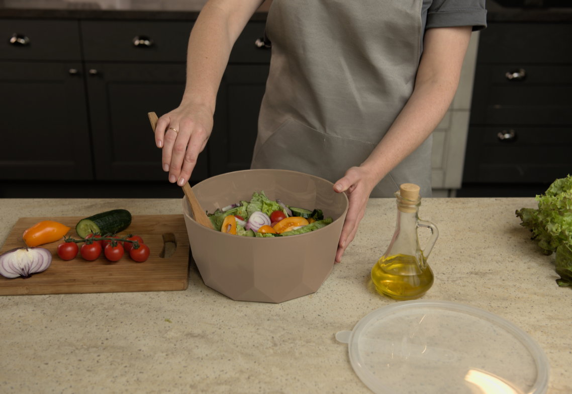 Салатник изготовлен из прочного безопасного пищевого пластика, не содержит бисфенол А, можно мыть в посудомоечной машине.