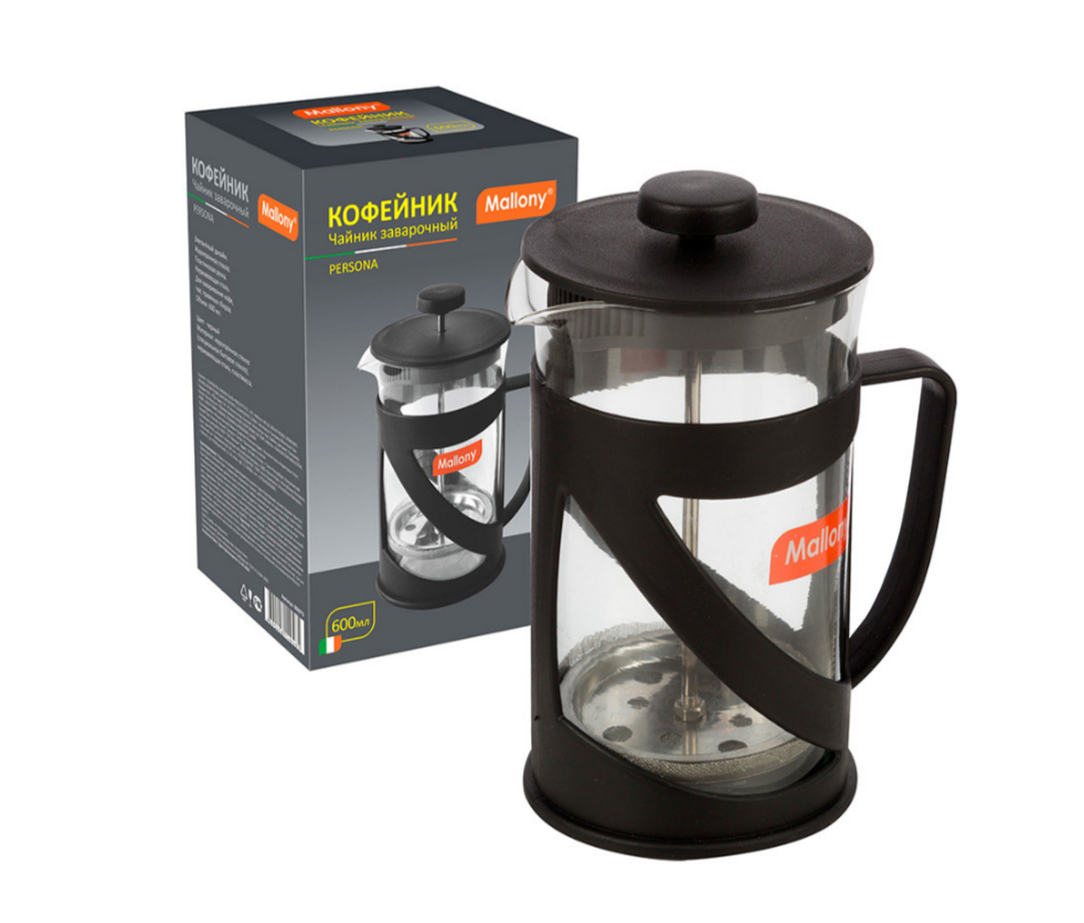 Чайник/кофейник Mallony кофе-пресс PERSONA объем 600 мл из жаропрочного стекла в пластиковом корпусе 006973 предназначен для заваривания напитков.