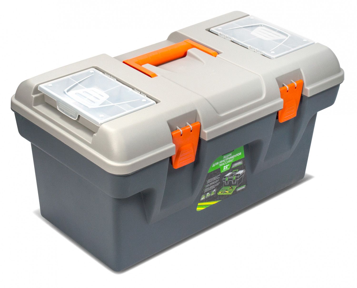 Ящики "Массимо" оптимальны для компактного хранения и переноски инструментов. Съемные органайзеры в крышке предназначены для упорядоченного хранения мелких деталей. Внутренний съемный лоток обеспечит доступ к часто используемым инструментам. Прочный и износостойкий корпус ящика и крышка с надежными защелками обеспечат долгий срок службы изделия и сохранность инструментов. Ящик изготавливается из прочного и долговечного полипропилена, подходящего для помещений с повышенной влажностью или перепадами температур, в том числе для гаража или балкона. Ящики «Массимо» представлены в трех объемах – 16'', 19'', 22''.