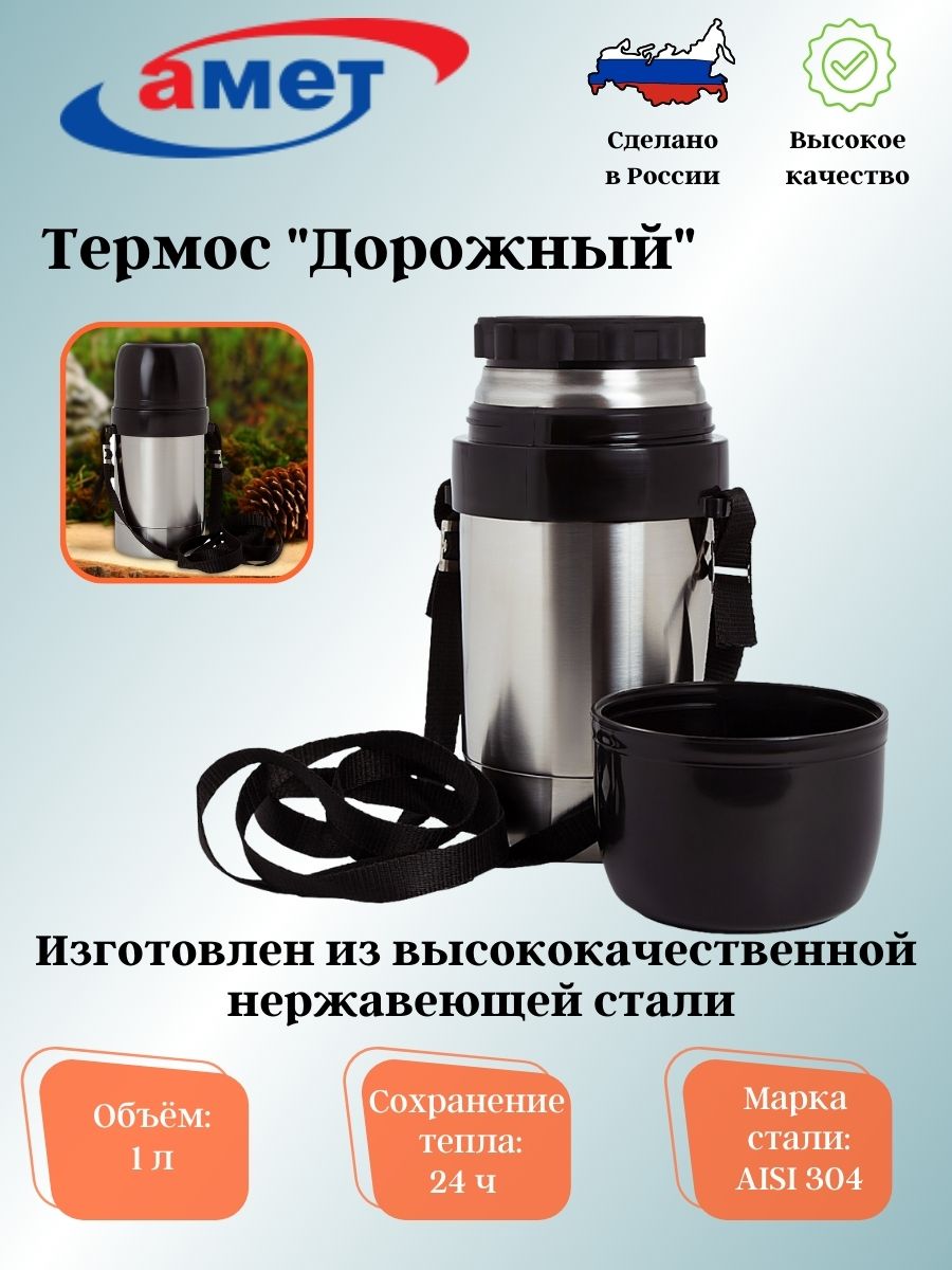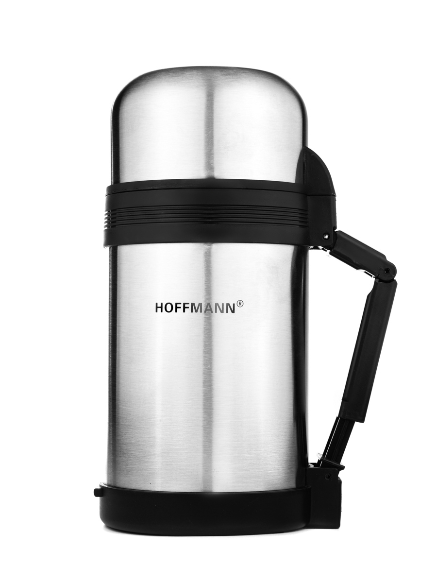 Термос HOFFMANN из высококачественной нержавеющей стали с широким горлом и крышкой-чашкой, объемом 1 л. Модель имеет двойные стенки корпуса.