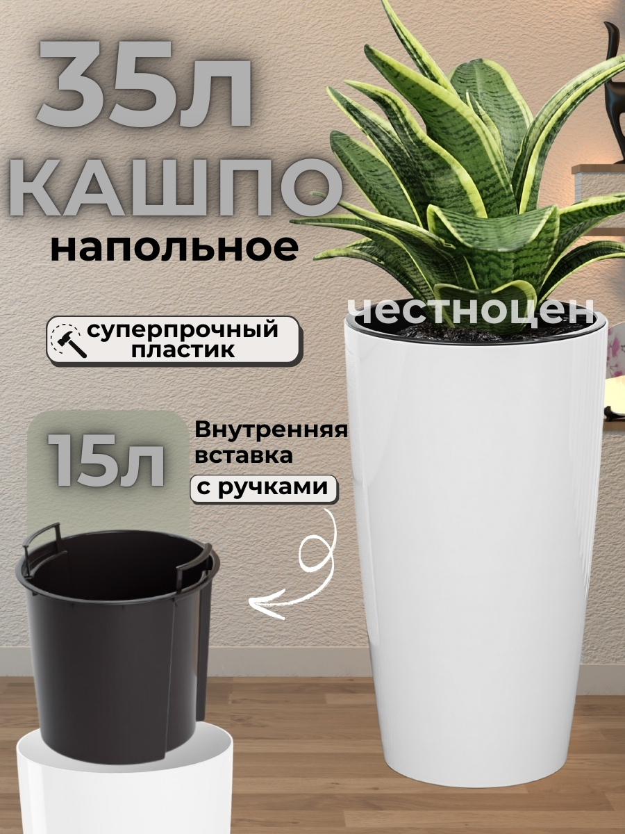 Кашпо "Рондо" 35л (со вставкой 15л) (белый) М8879