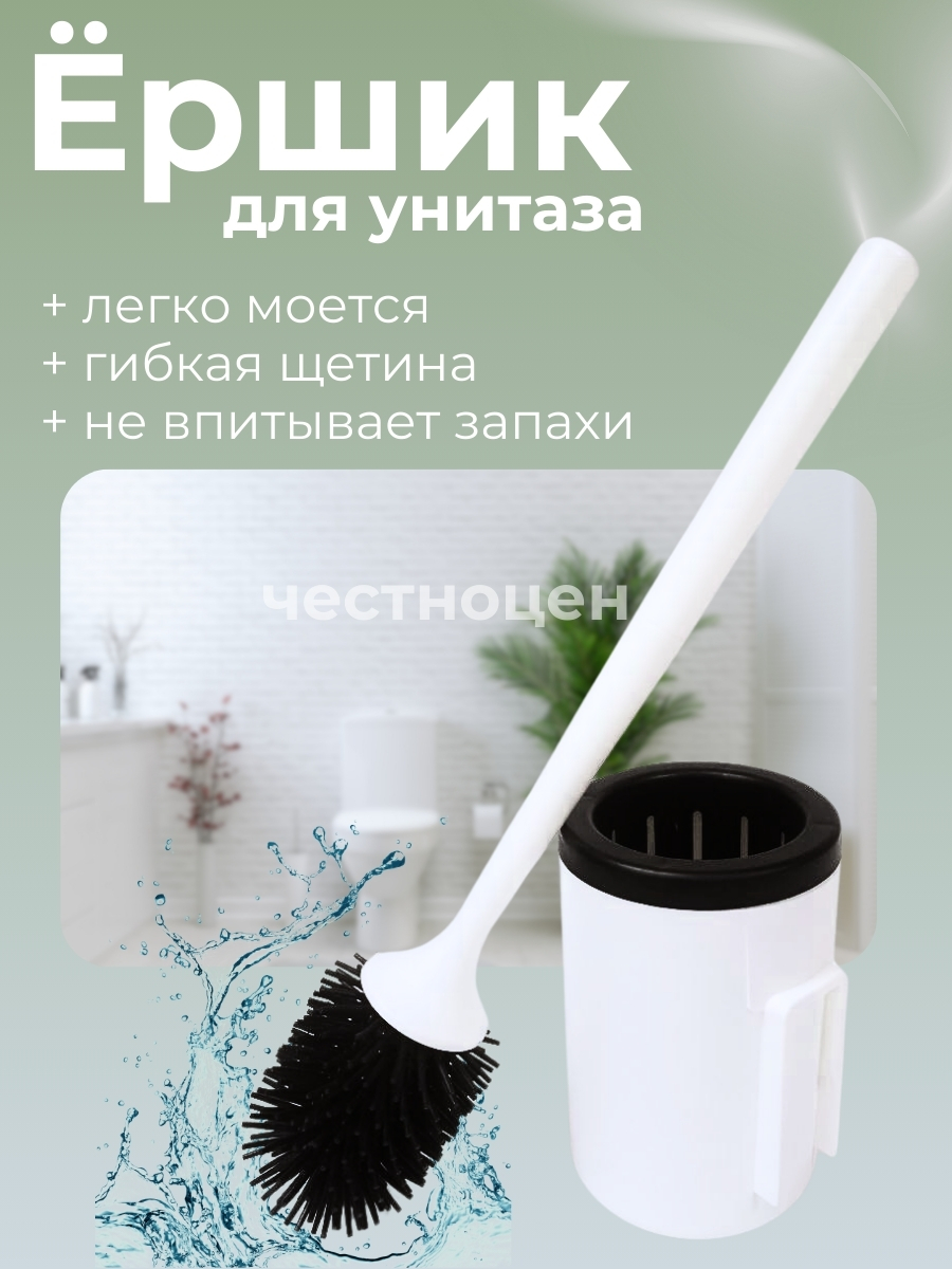Материал, из которого изготовлена щетка, отличается долговечностью, не впитывает посторонние запахи и дольше держит первоначальную форму по сравнению с классическими ершиками из нейлоновой щетины. Гибкие щетинки позволяют добраться до самых труднодоступных мест, значительно снижая время, необходимое на поддержание чистоты в ванных комнатах и санузлах. Ерш легко очищается и не задерживает влагу.