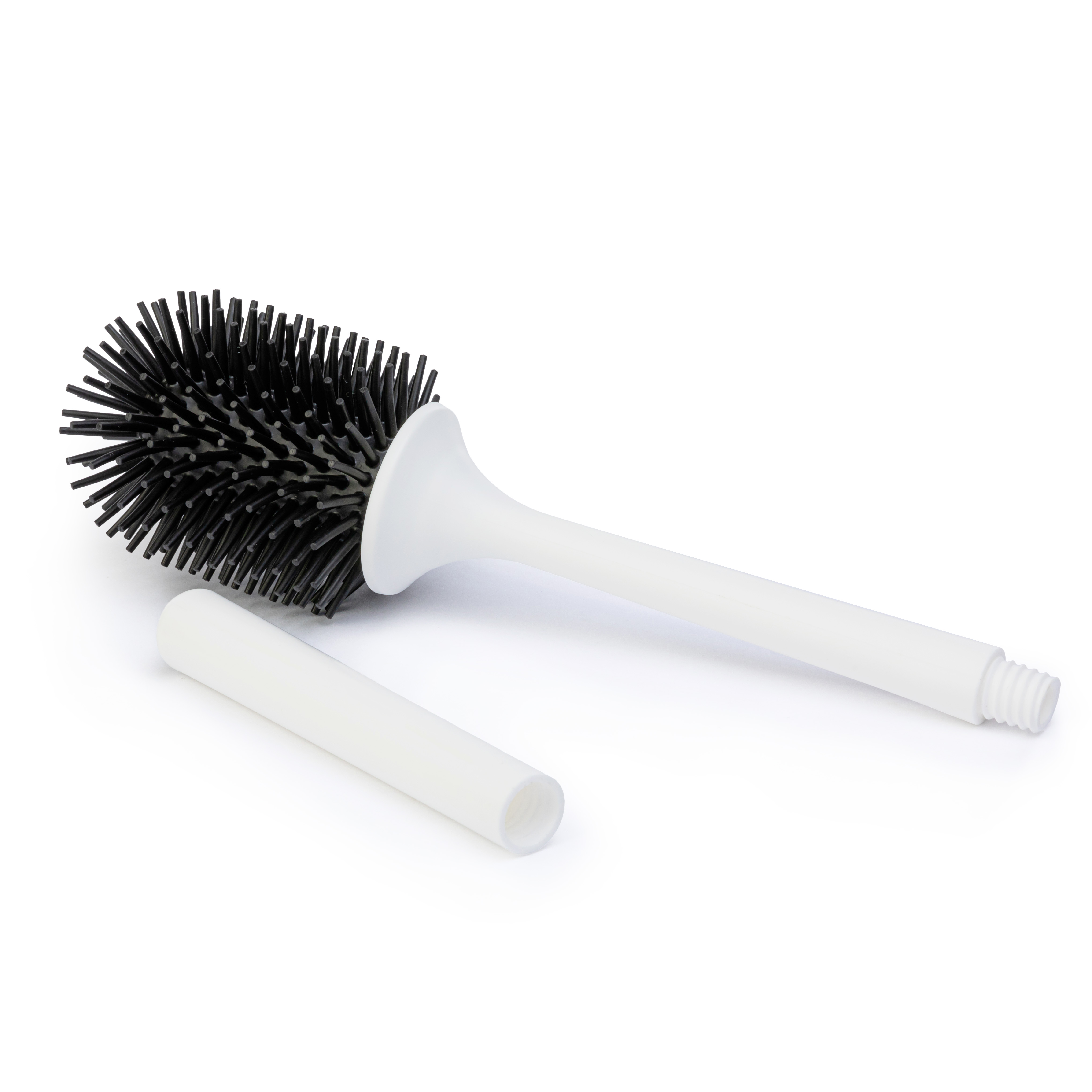 Материал, из которого изготовлена щетка, отличается долговечностью, не впитывает посторонние запахи и дольше держит первоначальную форму по сравнению с классическими ершиками из нейлоновой щетины. Гибкие щетинки позволяют добраться до самых труднодоступных мест, значительно снижая время, необходимое на поддержание чистоты в ванных комнатах и санузлах. Ерш легко очищается и не задерживает влагу.