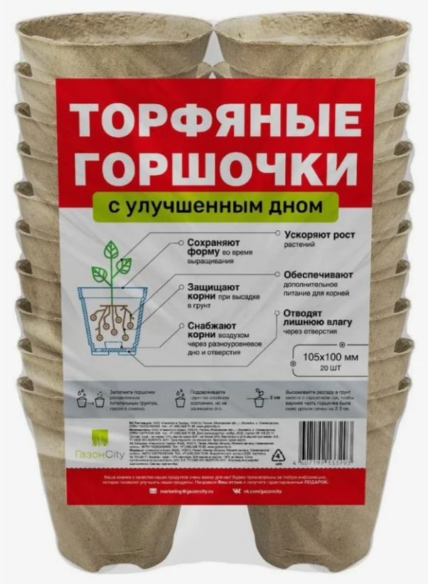 При выращивании рассады овощных культур важны размер и экологичность горшочков. Торфяные горшочки 105*100 мм подойдут под крупную корневую систему таких видов овощных культур как помидоры, баклажаны, тыквы и огурцы. Также горшочки отвечают всем требованиям экологичности, так как изготовлены из натуральных природных материалов.