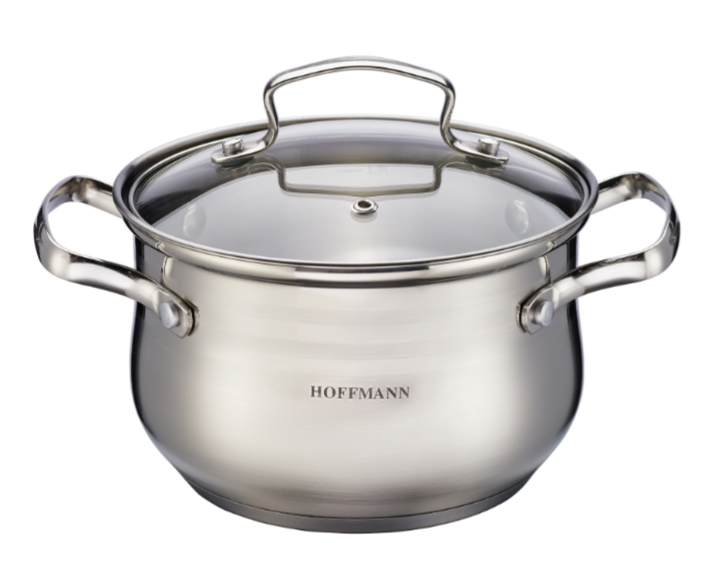 Кастрюля, нержавеющая сталь 0,5 мм., 1,9 л (16 см) . крышка из закаленного стекла с отверстием для паровыпуска; имеет энергосберегающее 1-слойное дно капсулы с алюминиевым покрытием, эргономичные ручки из нержавеющей стали, индукция.