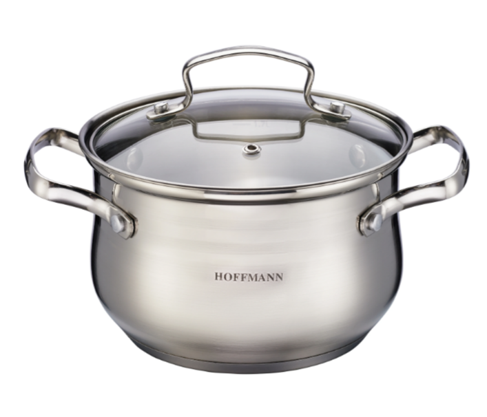 Кастрюля, нержавеющая сталь 0,5 мм., 2,8 л.( 18 см),.крышка из закаленного стекла с отверстием для паровыпуска; имеет энергосберегающее 1-слойное дно капсулы с алюминиевым покрытием, эргономичные ручки из нержавеющей стали, индукция.