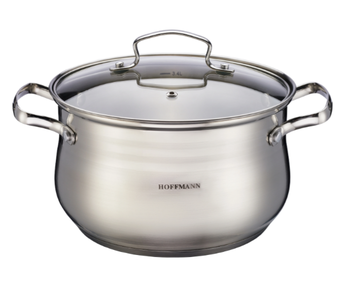 Кастрюля, нержавеющая сталь 0,5 мм, 3,7 л.( 20 см),. крышка из закаленного стекла с отверстием для паровыпуска; имеет энергосберегающее 1-слойное дно капсулы с алюминиевым покрытием, эргономичные ручки из нержавеющей стали, индукция
