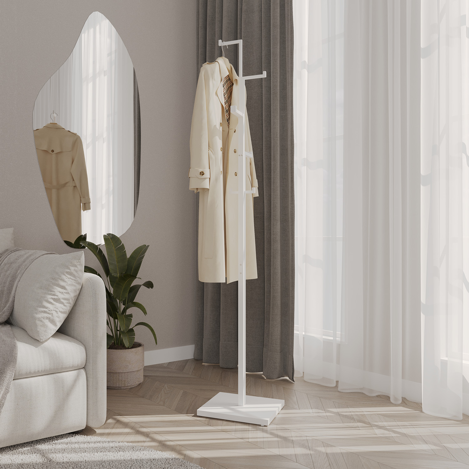 Отличаясь простотой и практичностью, вешалка ЗМИ подходит для любого интерьера благодаря своему лофтовому стилю дизайна. Получите удобное и стильное место для хранения одежды, не требующее установки и монтажа