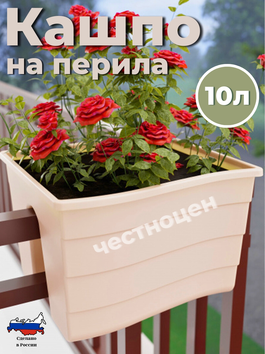 Кашпо на перила 290х290х200мм малое (бежевый) М8912