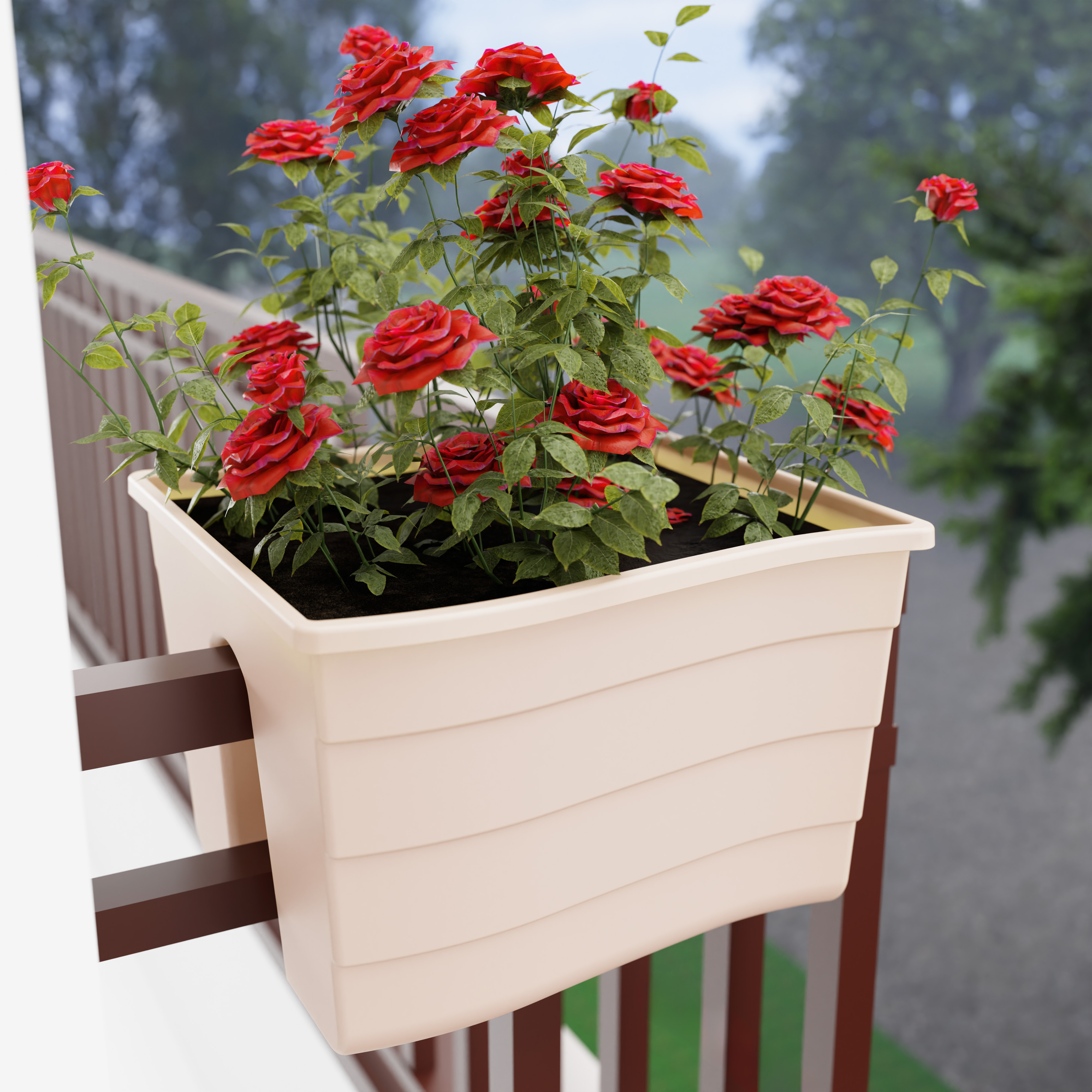 Кашпо на перила 290х290х200мм малое (бежевый) М8912