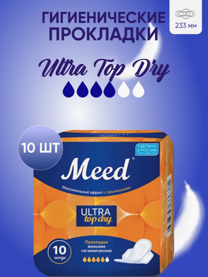 Прокладки жен. "Meed" 10шт для критич.дней Ultra Plus с крылышками TOP Dry