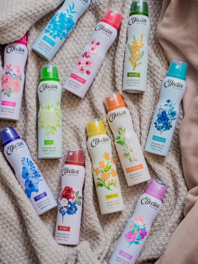 Женский дезодорант-спрей для тела Effective - ваш надежный спутник в поддержании ощущения свежести в течение целого дня, благодаря уникальному ароматическому эффекту. Он не только приносит неповторимое ощущение свежести, но и является важным элементом ухода за вашей кожей, бережно относясь к вашему здоровью. В одной упаковке находится 24 дезодоранта по 150мл каждый – идеальное количество для длительного использования и удобства в транспортировке.