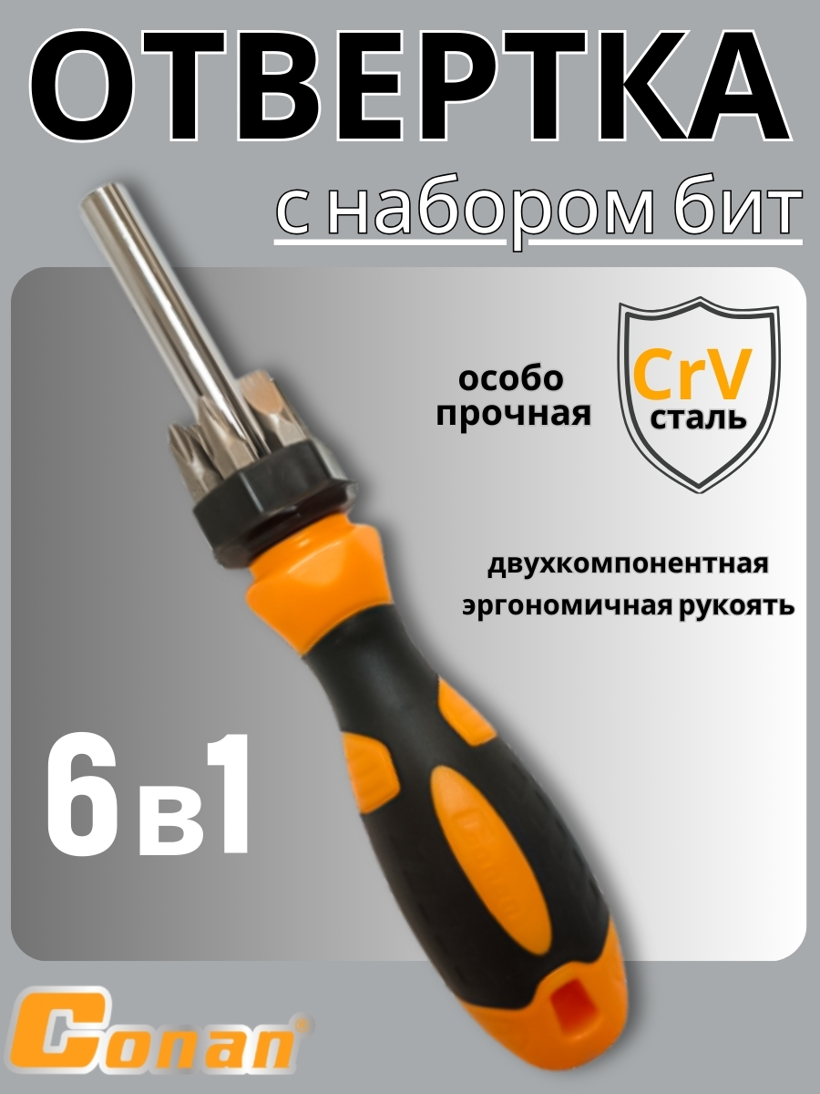 Отвертка Conan с набором бит, 6в1 COS0507 OLS-778-28
