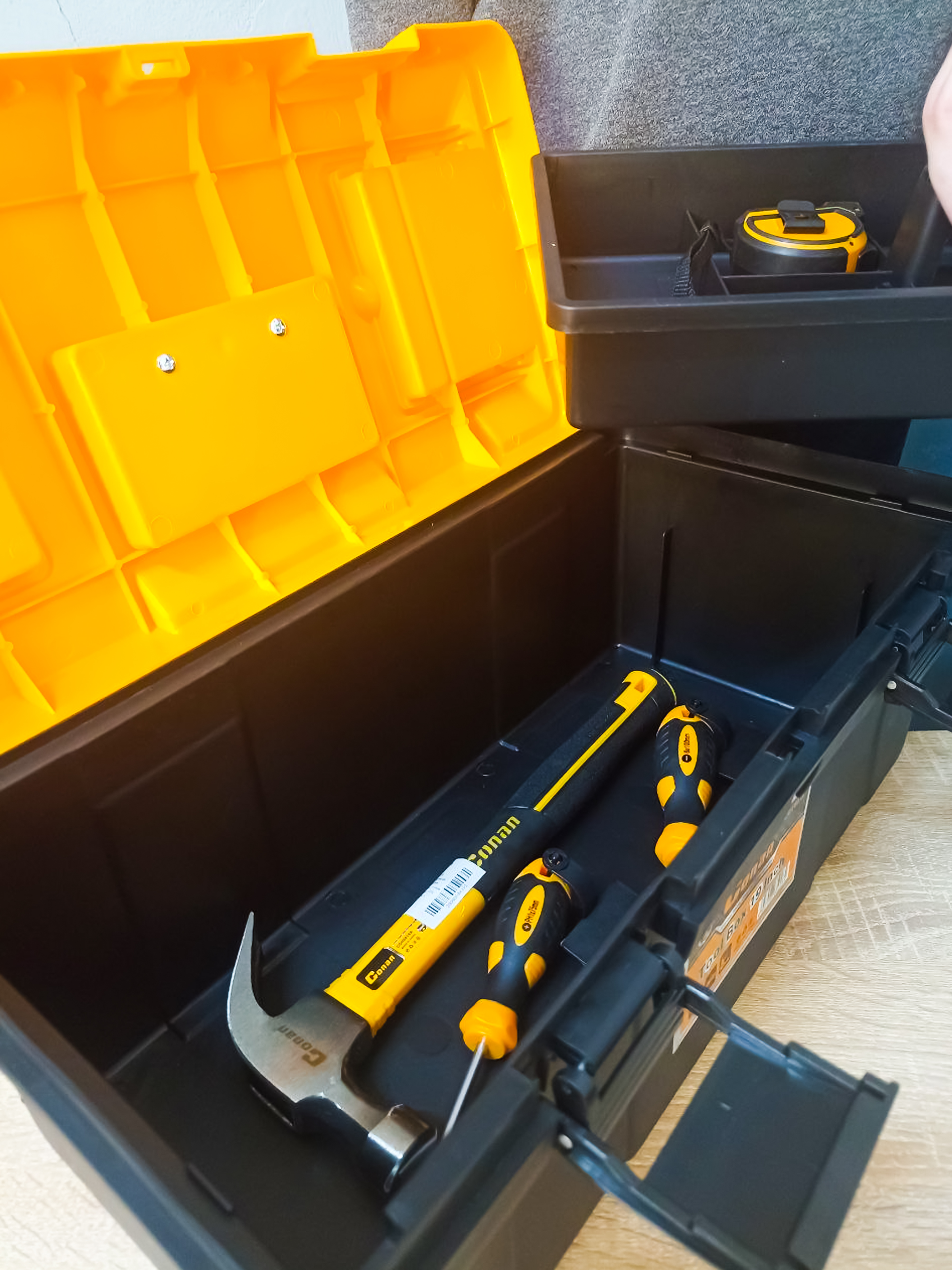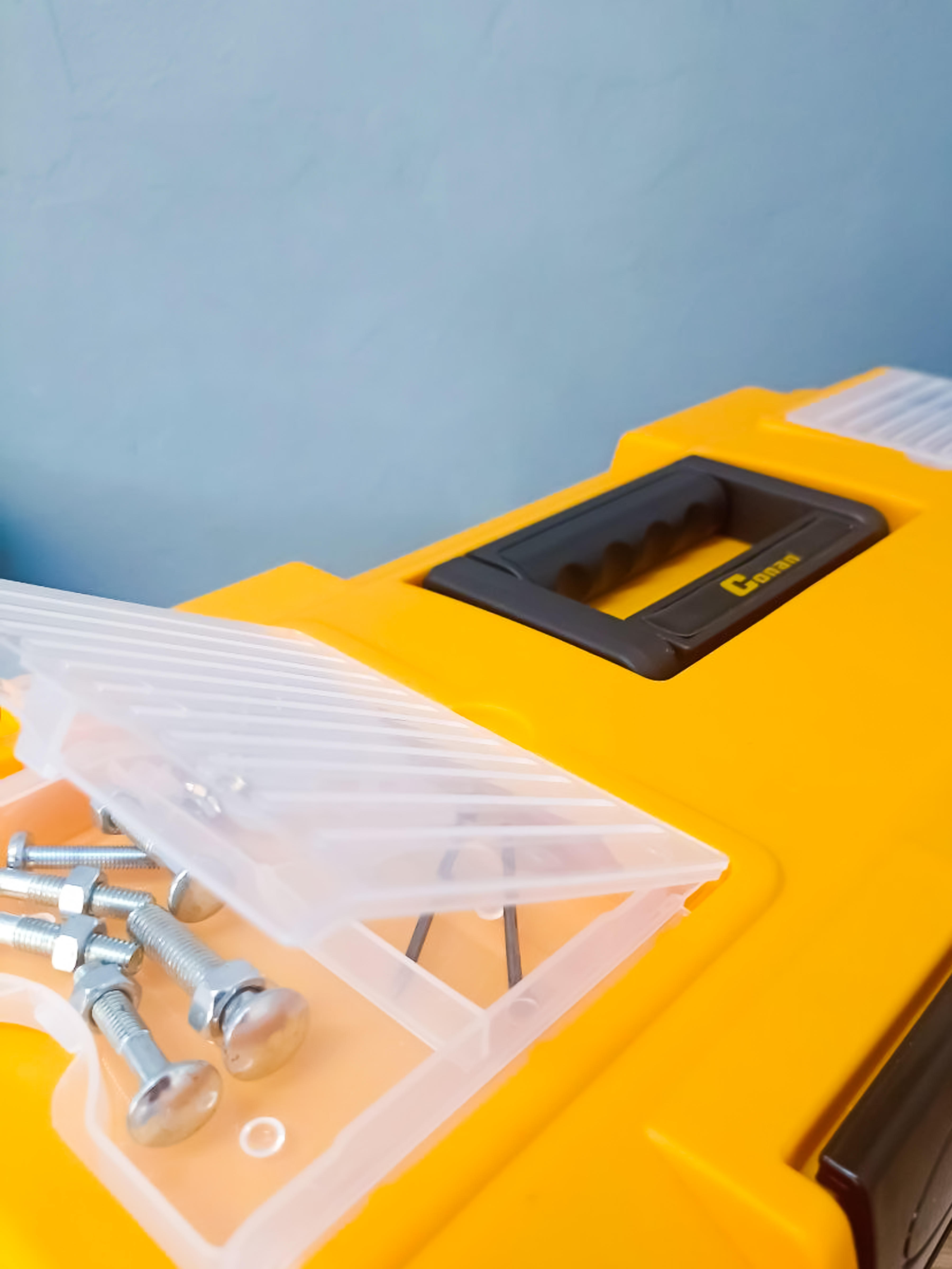 Усиленный ящик для инструментов используется для хранения и транспортировки ручного и электроинструмента, а также хозяйственных мелочей или рыболовных принадлежностей. Заменяет коробку для инструментов, а также может служить рыболовным ящиком. Пригодится дома, в поездке, а также в гараже или на даче.ПреимуществаНадежность — корпус из прочного пластика выдерживает распределенную нагрузку на крышку.Безопасная транспортировка — ящик надежно запирается, риск случайного открывания исключен.