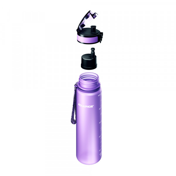 Матовое бархатистое покрытие бутылки приятно на ощупь, широкий ремешок дополнительно фиксирует бутылку во время использования, защитный колпачок не даст воде пролиться в сумке. Объем 0,5 л оптимален для утоления жажды на ходу, новую порцию воды для фильтрации можно добавить, как только это будет необходимо. Удобно для поездок и перелетов.