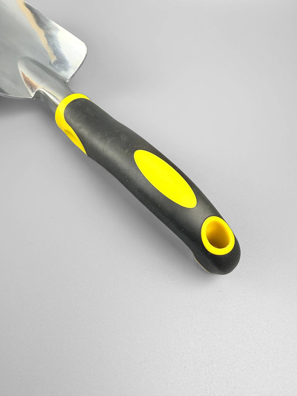 Лопатка садовая OLS-247-13 — практичный и удобный инструмент, упрощающий множество работ с грунтом. Он сэкономит время и силы, когда нужно углубить лунки под рассаду, пересадить растение из одного места в другой, смешать грунт с удобрениями, обрубить или выкорчевать корень сорняка, а также выкопать червей для рыбалки. Лопатка изделия изготовлена из стали — прочного и износостойкого материала, который устойчив к коррозии. Ручка с частично рифленой структурой выполнена из пластика, что обеспечивает прочный обхват инструмента и исключает риск его выскальзывания во время проведения земельных работ. Также предусмотрено отверстие для бережного хранения изделия.