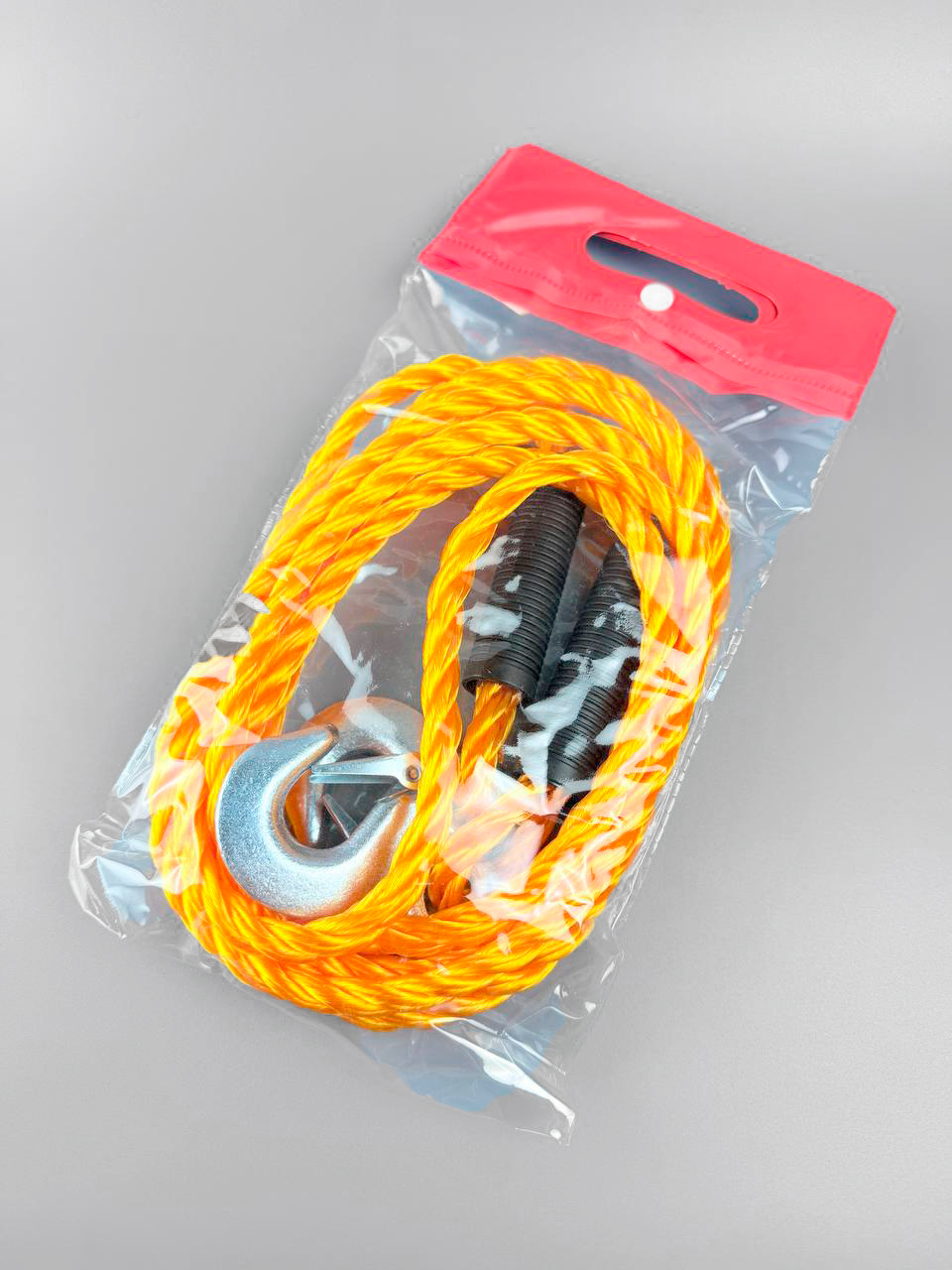Трос буксировочный с двумя крюками длиной в удобном пакете — это надежный автомобильный аксессуар, незаменимый для каждого водителя и являющийся важной частью ваших автопринадлежностей. Он выполнен из полипропиленового материала высшего качества, гарантируя долгий срок службы и устойчивость к транспортным нагрузкам.