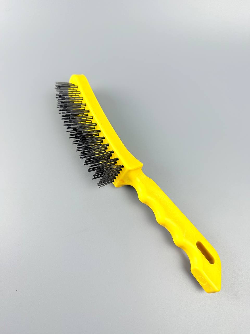 Металлическая щетка с пластиковой ручкой отличается 6-х рядным расположением проволоки. За счет этого увеличивается площадь и качество очистки.