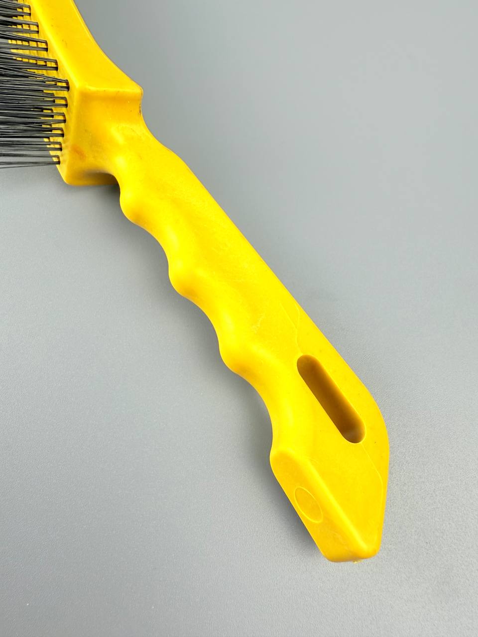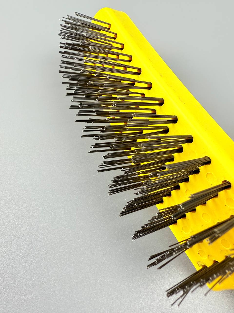 Металлическая щетка с пластиковой ручкой отличается 6-х рядным расположением проволоки. За счет этого увеличивается площадь и качество очистки.