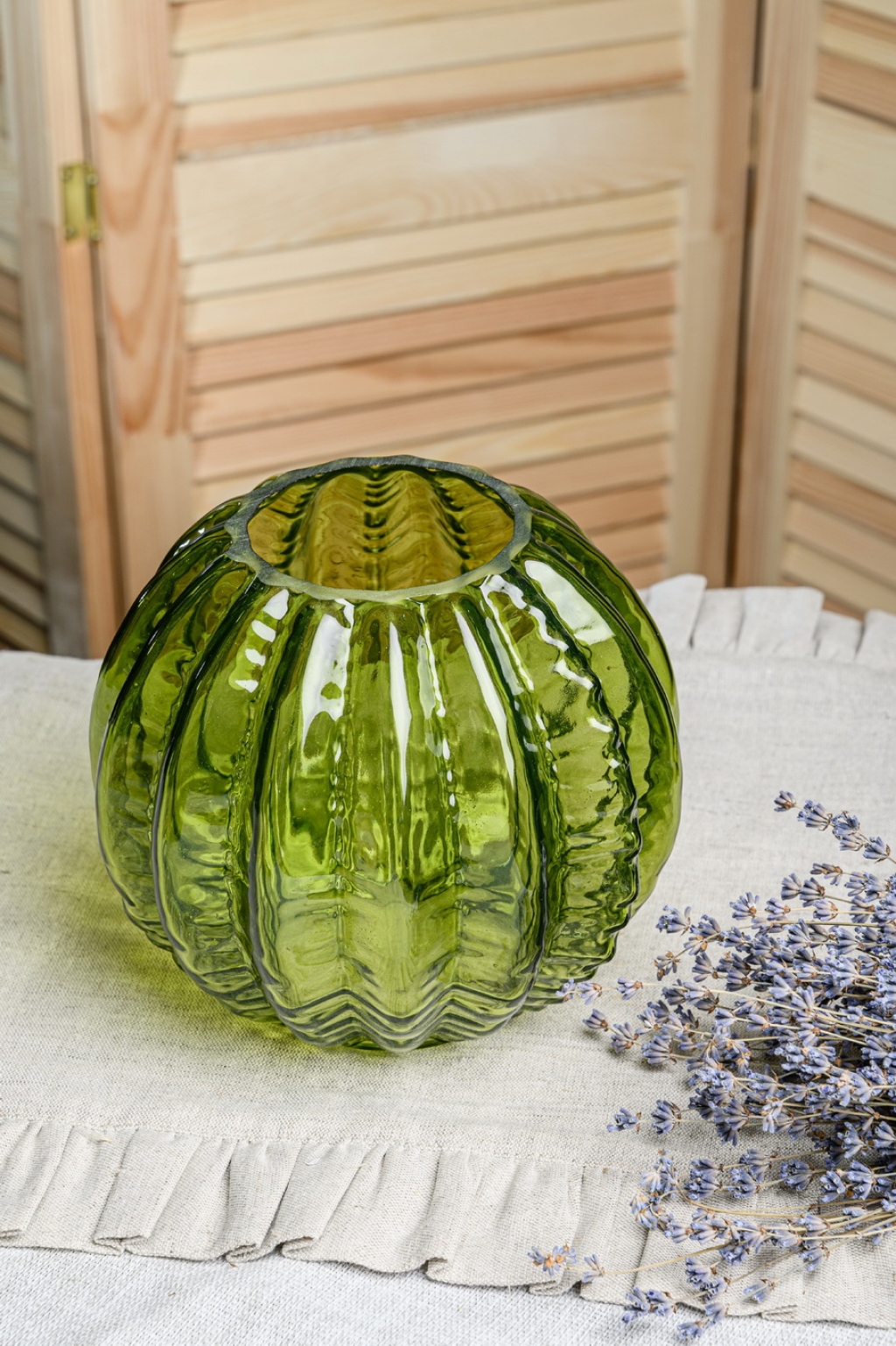 Ваза "Плиссе" малая d-170мм h-160мм арт.1901-Н5 "Олива"