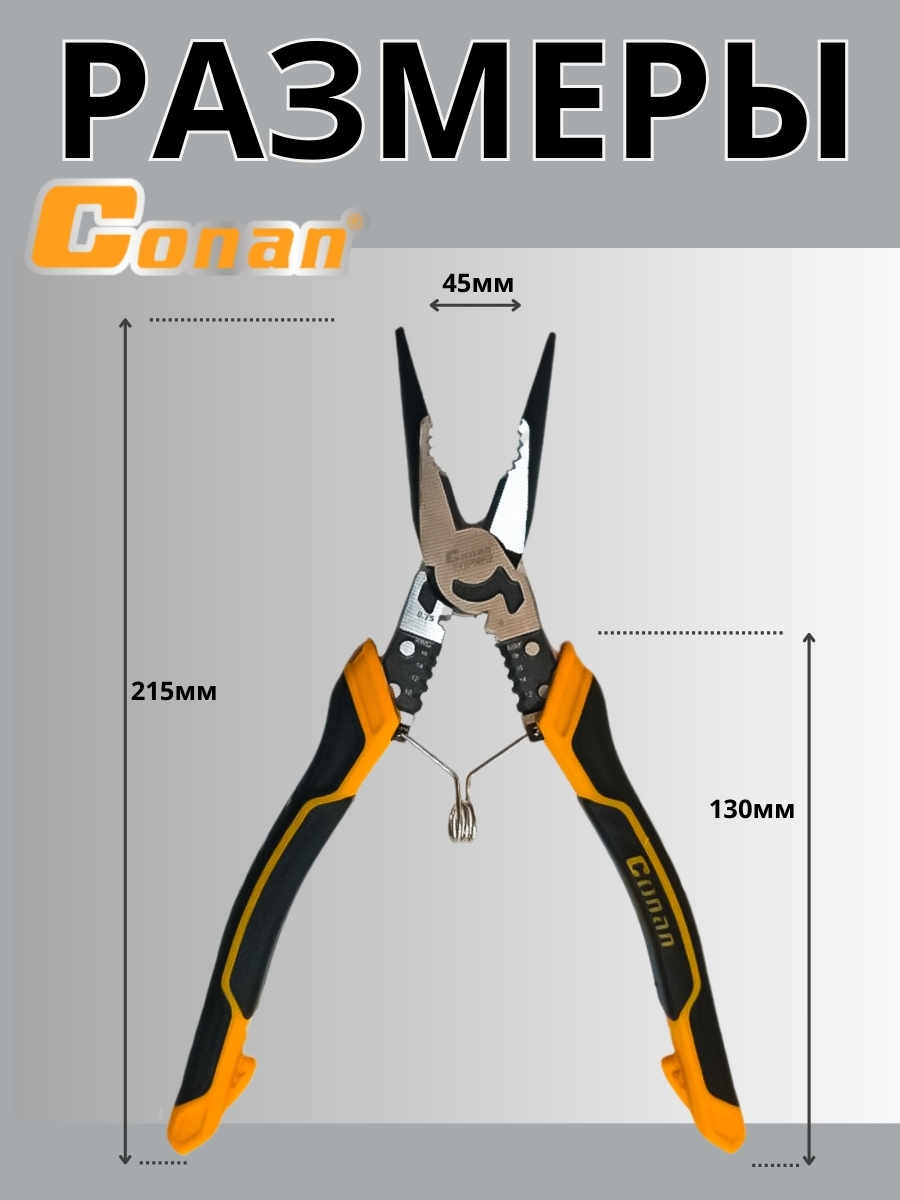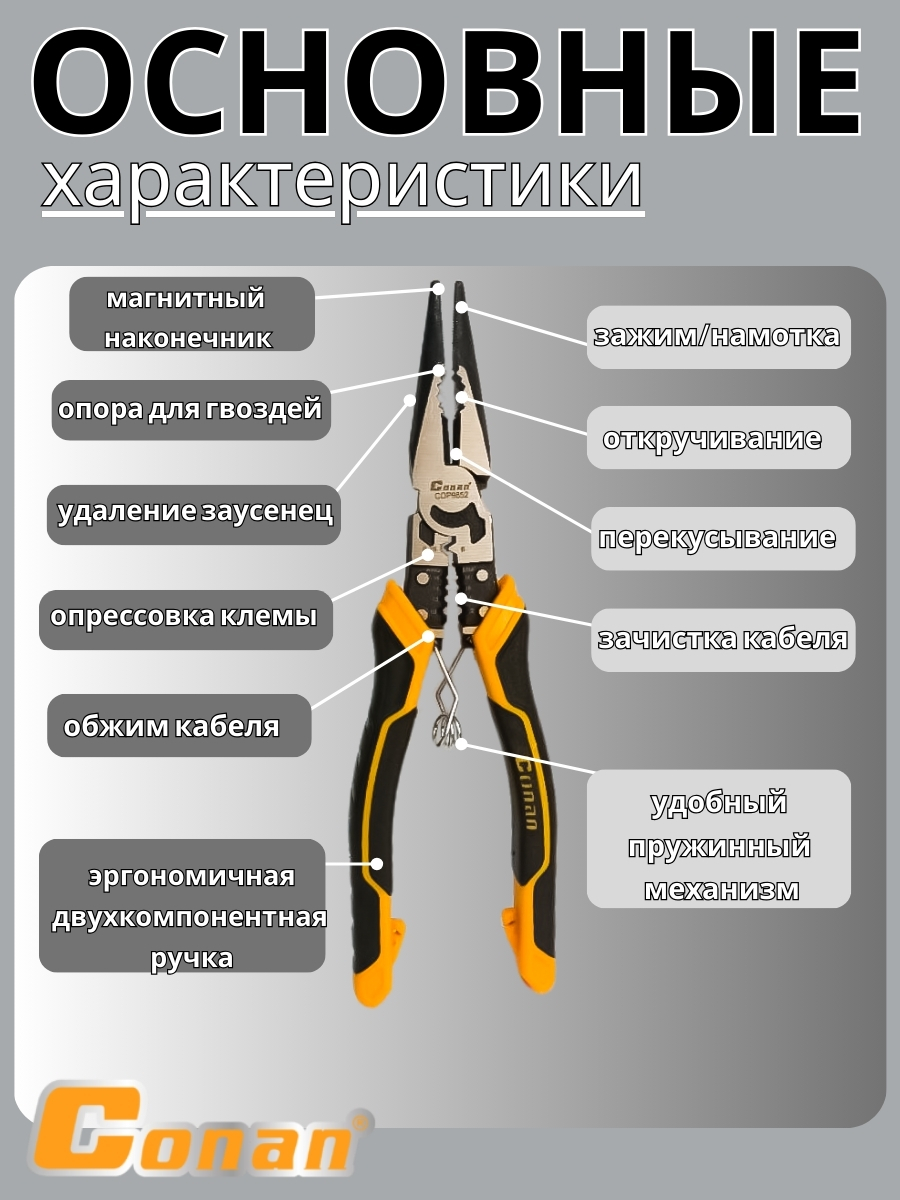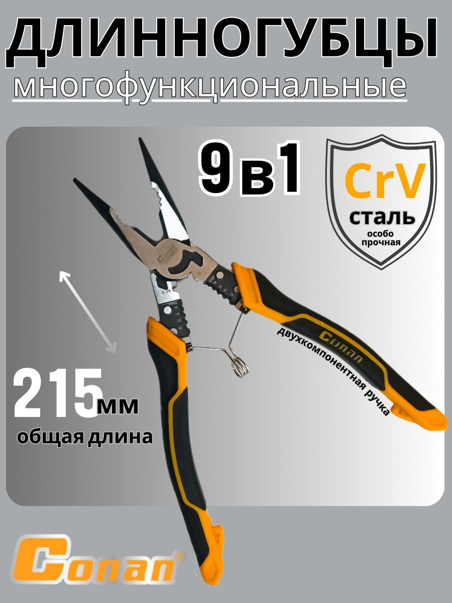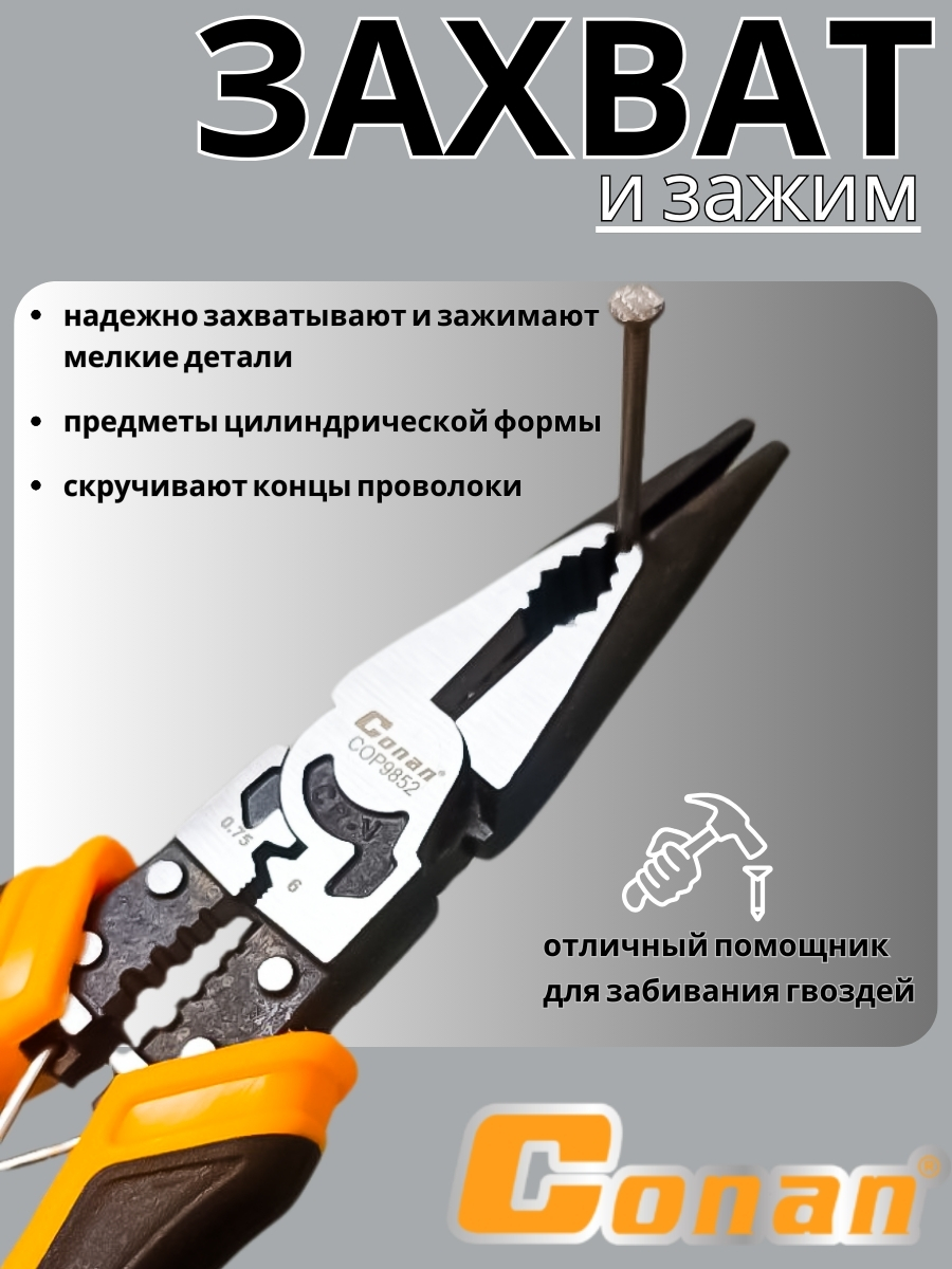 Длинногубцы многофункциональные комбинированные 9в1 Conan для электриков, 215мм COP9852 OLS-778-81