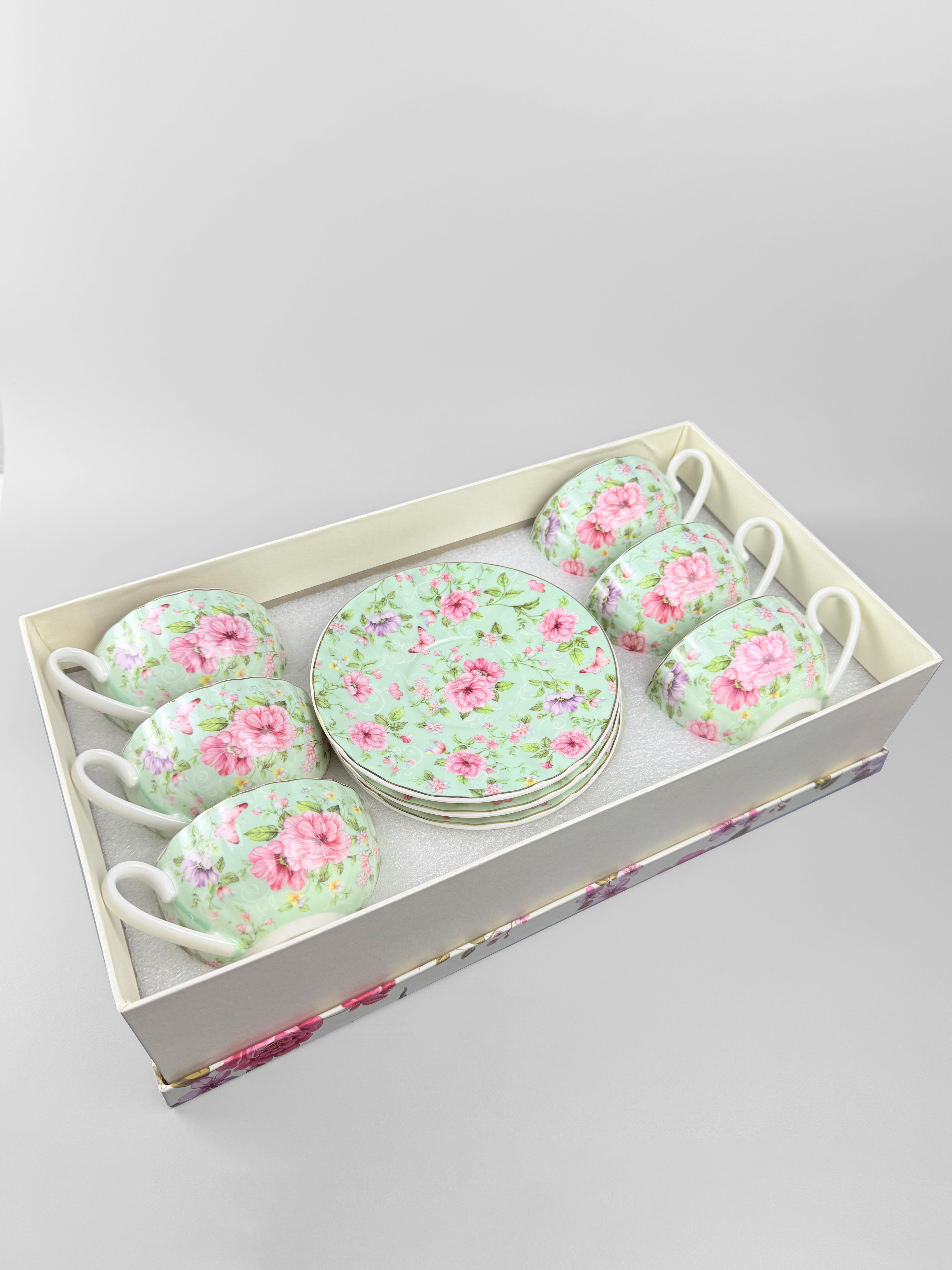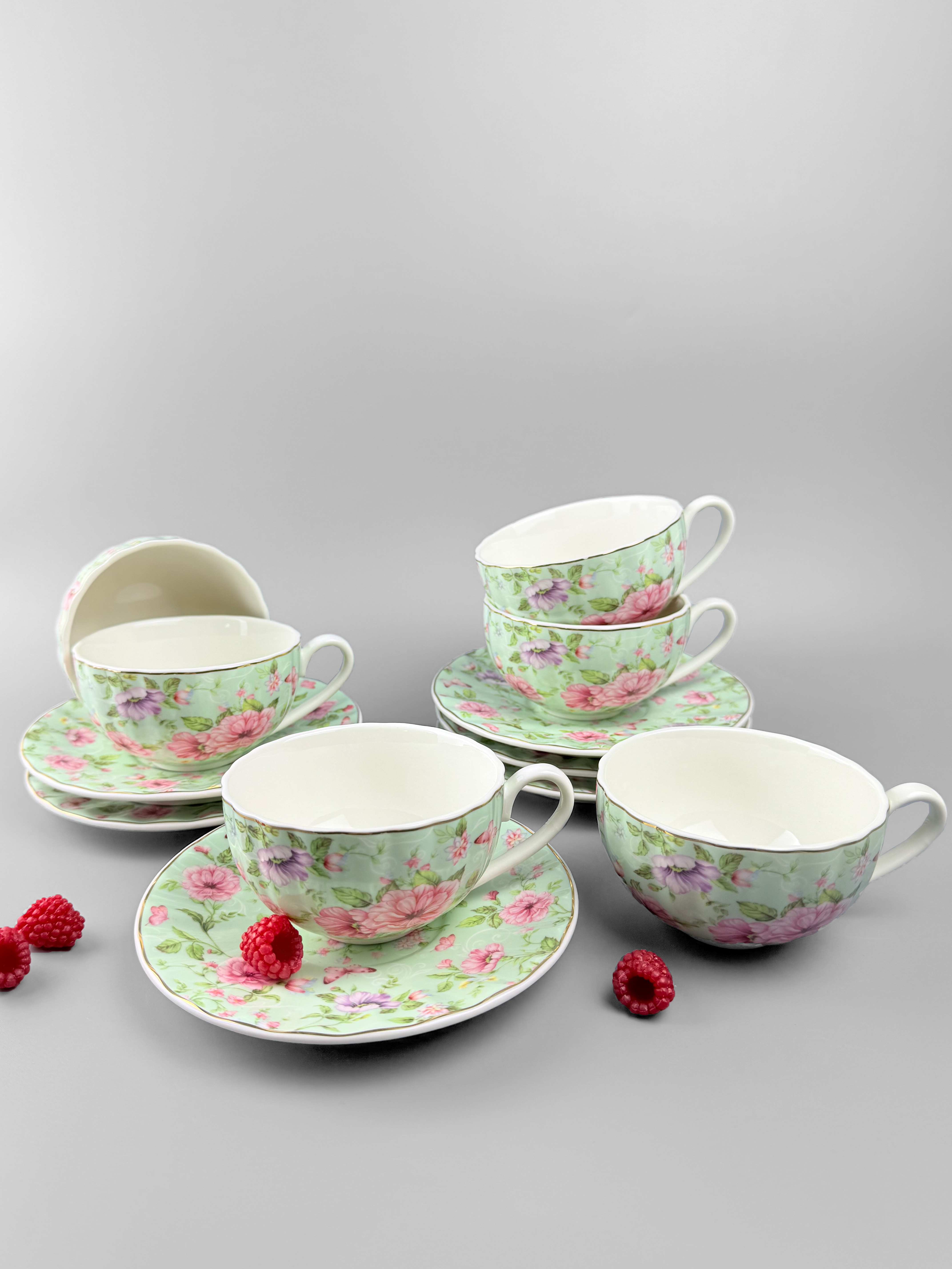 Изысканный сервиз станет настоящим украшением вашей кухни и подарит незабываемые моменты чаепития в кругу близких. Этот элегантный набор из 12 предметов идеально подходит для компании из 6 человек, позволяя насладиться любимым напитком в атмосфере уюта и комфорта.