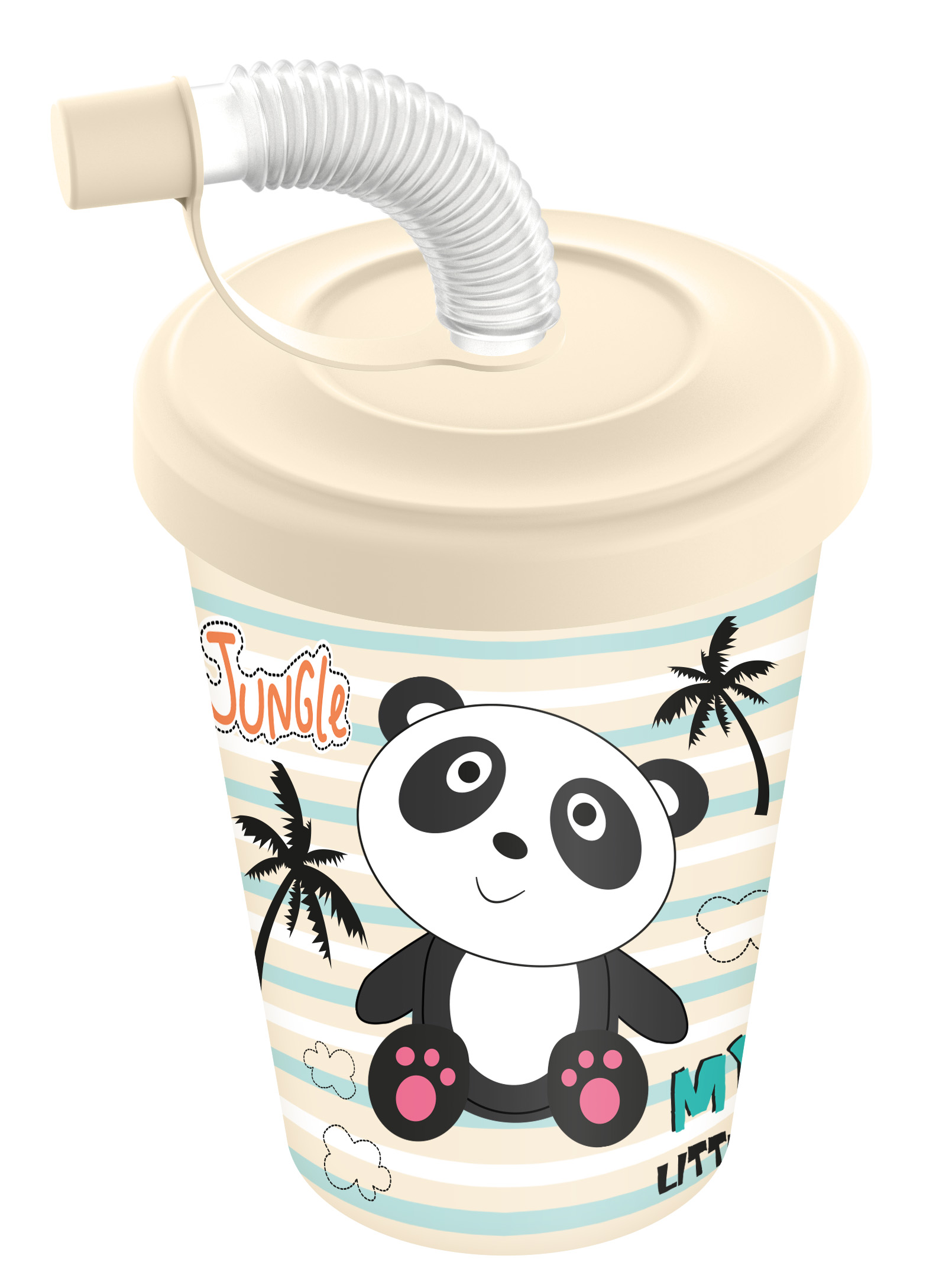 Стакан детский с крышкой, трубочкой и колпачком 280мл с декором (светло-бежевый) 221501925/01