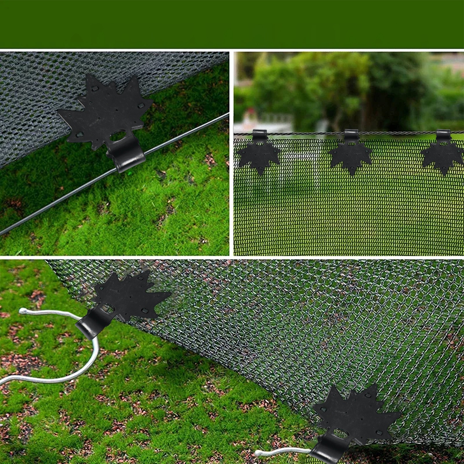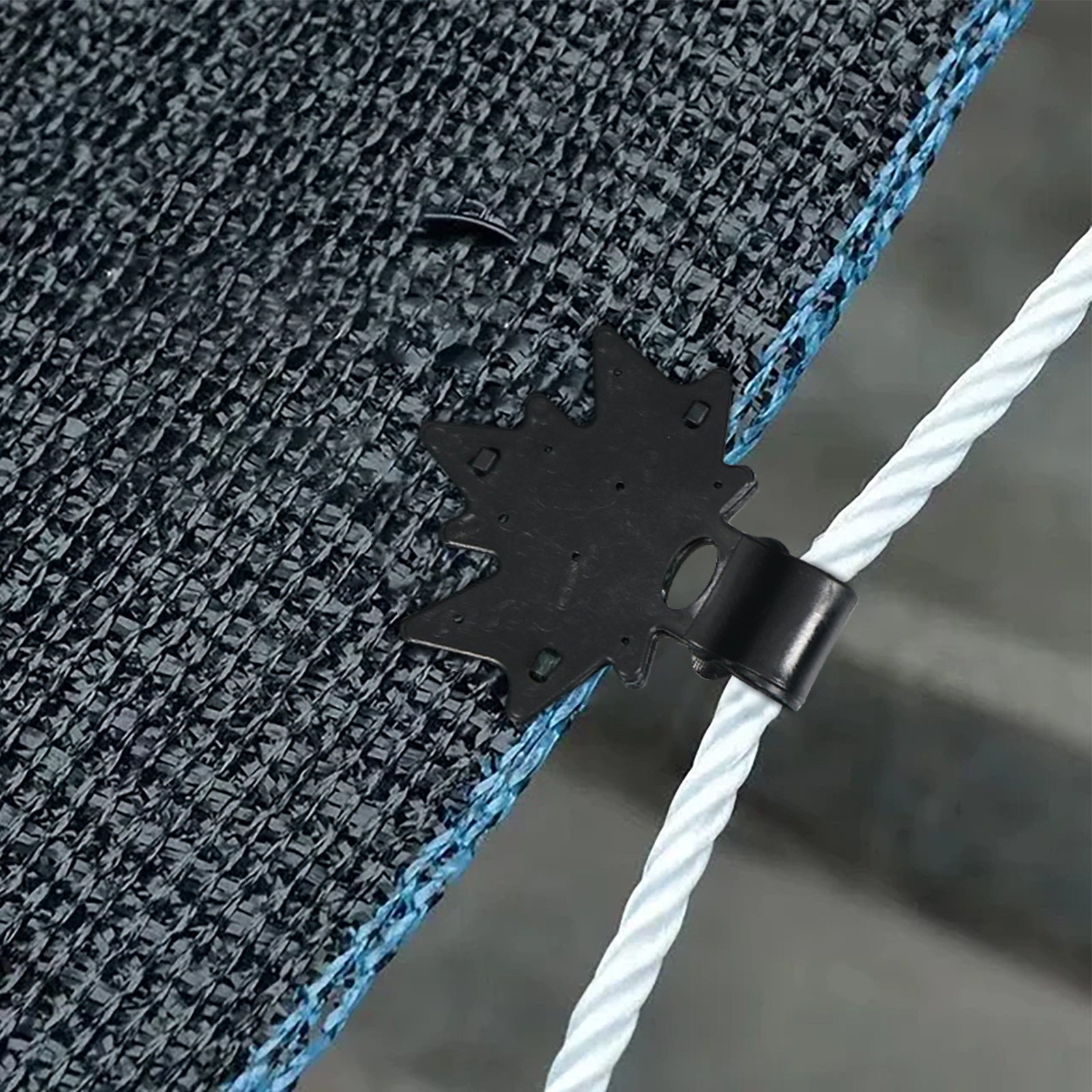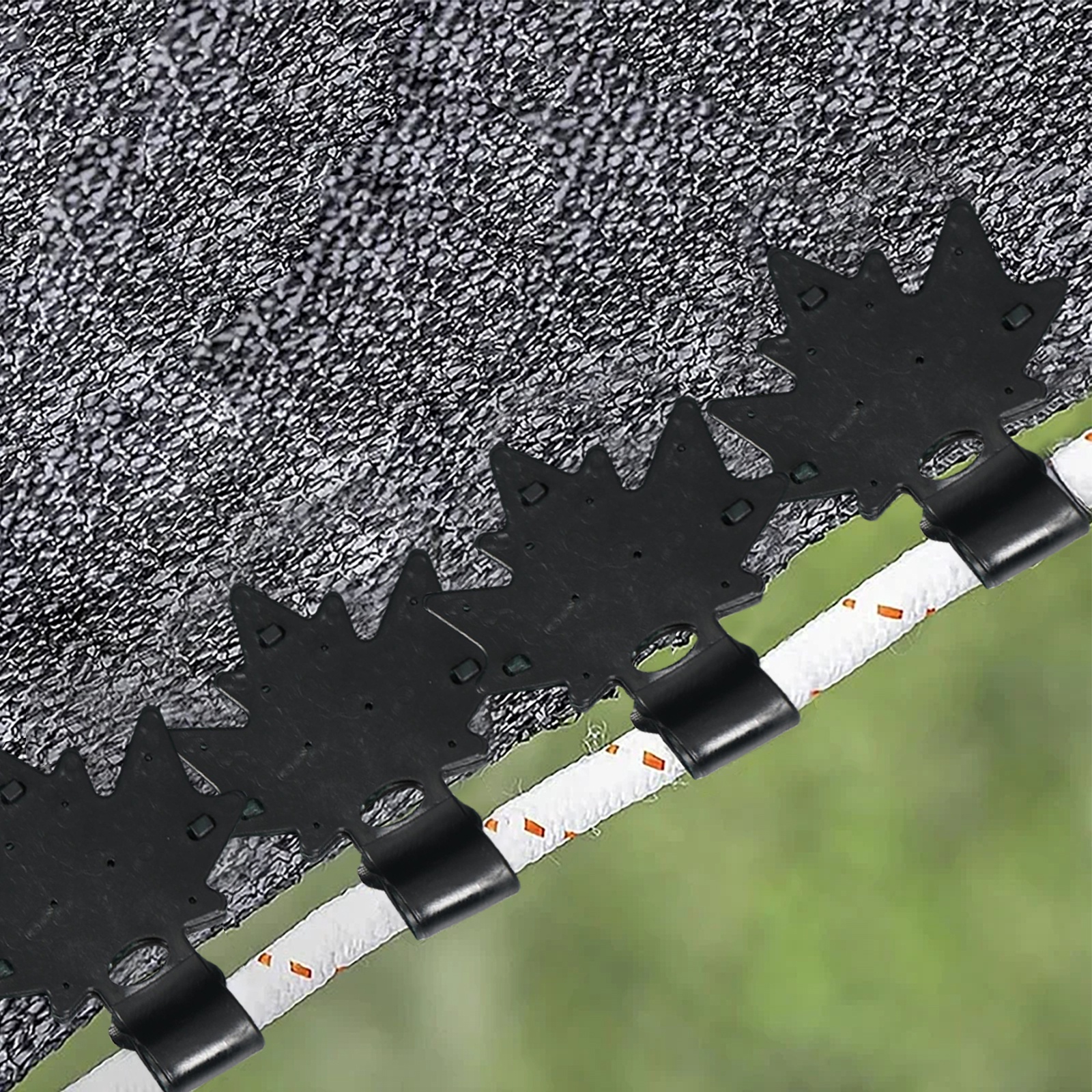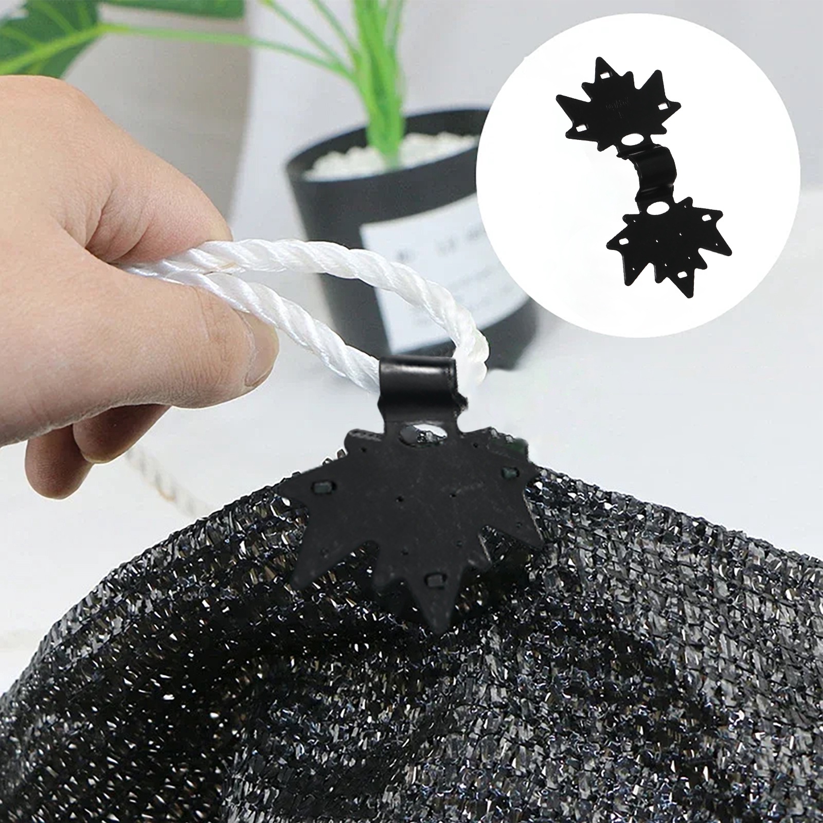 Клипса "Кленовый лист" изготовлена из устойчивого к солнцу и морозу пластика. "Кленовый лист" применяется для фиксации всех видов сеток: затеняющей, солнцезащитной, ограждающей, для защиты от птиц, маскировочной и других. плотностью 40 - 55%. Клипсы позволяют произвести тугую натяжку полотна с помощью веревки и обеспечивает надежную фиксацию при сильных порывах ветра. Благодаря использованию клипсы, сетка не рвется в местах креплений и прослужит дольше.