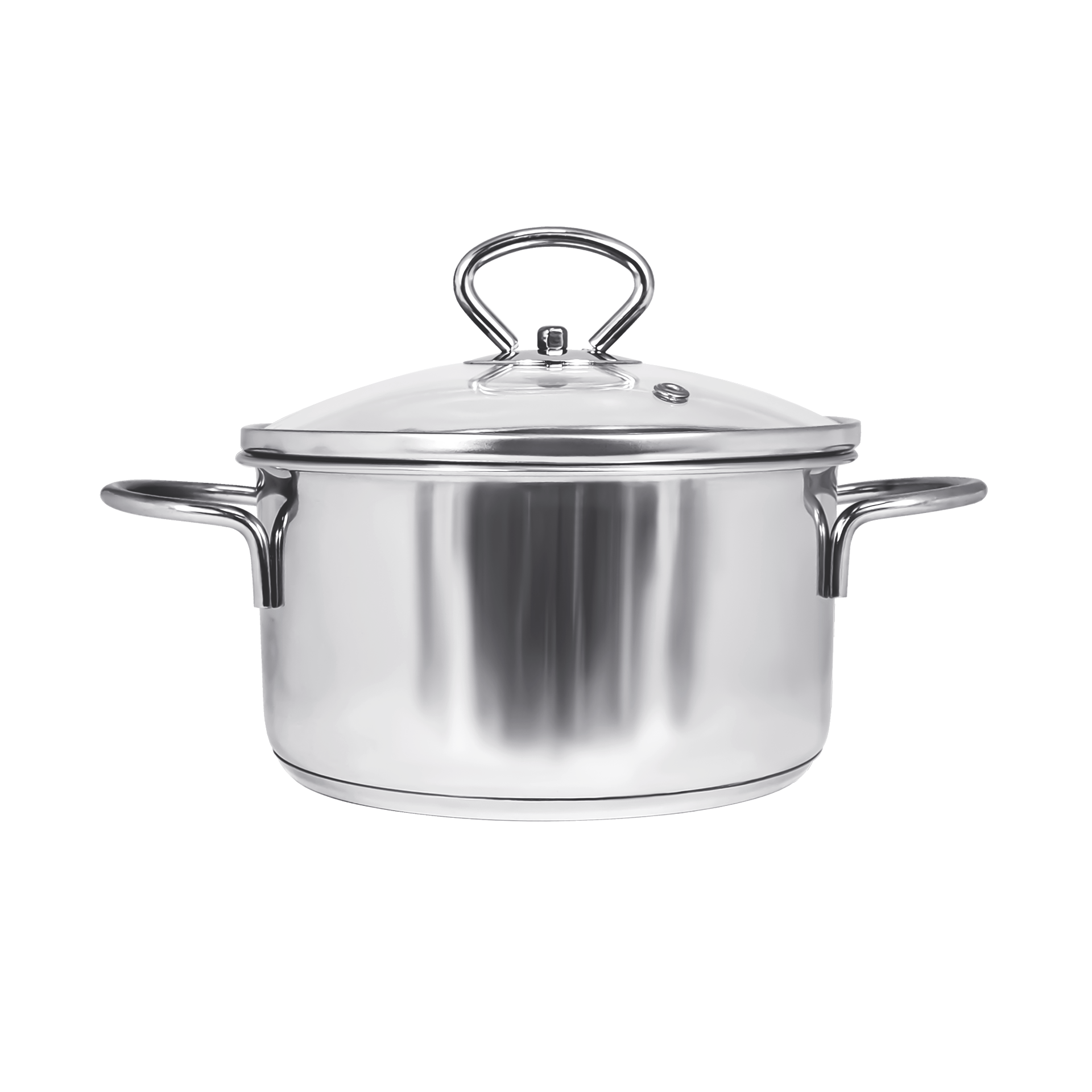 Кастрюля имеет цилиндрическую форму и две удобные ручки. Крышка из стекла с отверстием для выпуска пара позволяет наблюдать за процессом приготовления пищи и контролировать его.