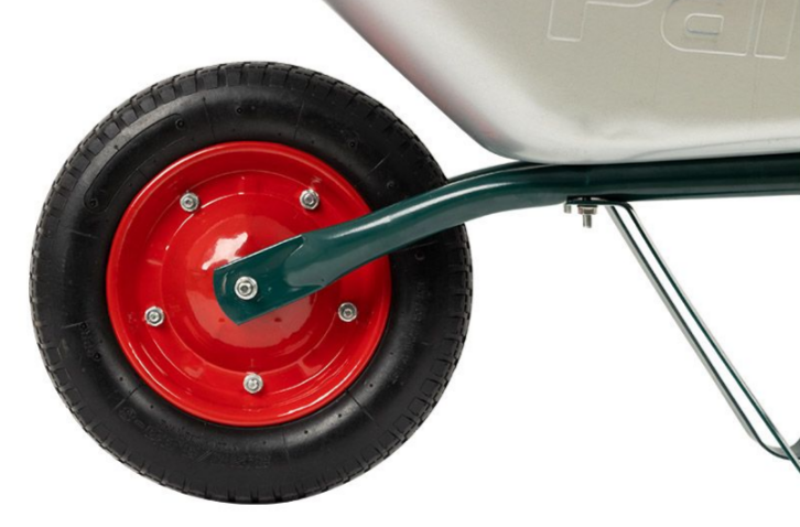 Пневматическое колесо облегчает перевозку тяжелых грузов и обладает тихим ходом.