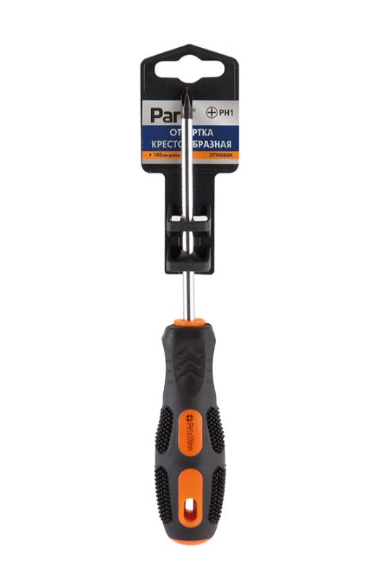 Отвертка Park Strom PH1х10см, двухкомпонентная рукоятка OTV008DK, крестовая 356008