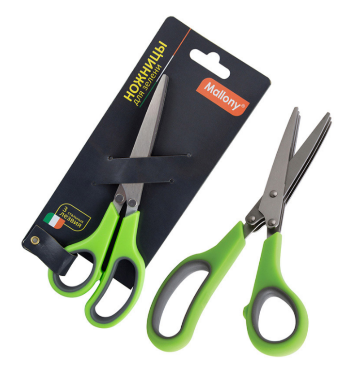 Особая конструкция из трех параллельных рядов лезвий позволяет быстро нарезать зелень.