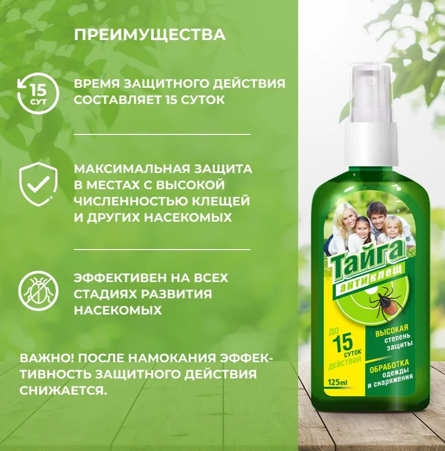 Спрей от клещей 125мл Тайга Антиклещ ИН-26F