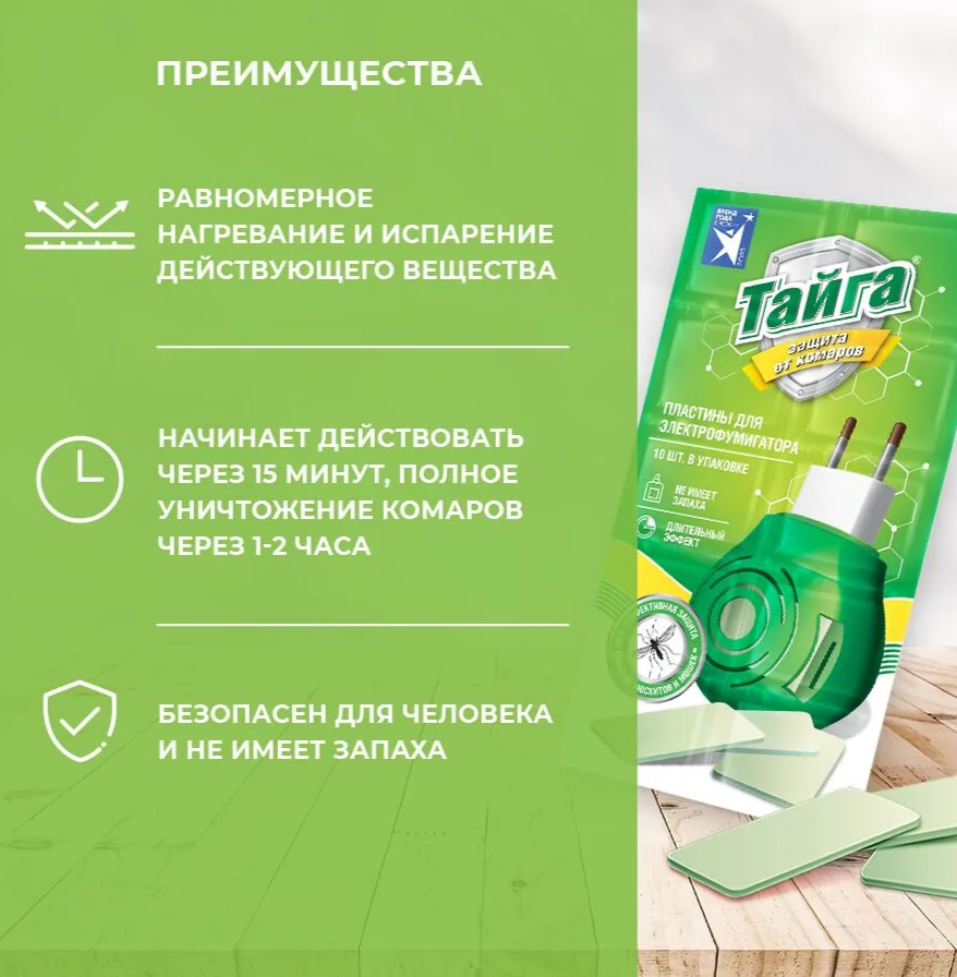 Пластины от комаров Тайга это надежный и безопасный способ защитить всю семью от назойливых насекомых на всю ночь. Средство начинает действовать уже через 15-20 минут и при закрытых окнах поможет быстро уничтожить комаров в помещении до 20 квадратных метров. Также одна пластина поможет защитить спальню в течение 12 часов при открытых окнах.