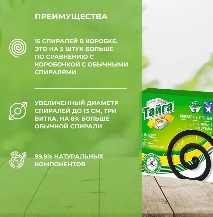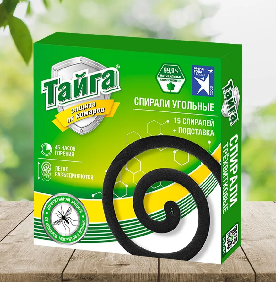 Спирали от комаров угольные трехвитковые 15шт НД Тайга ИН-139