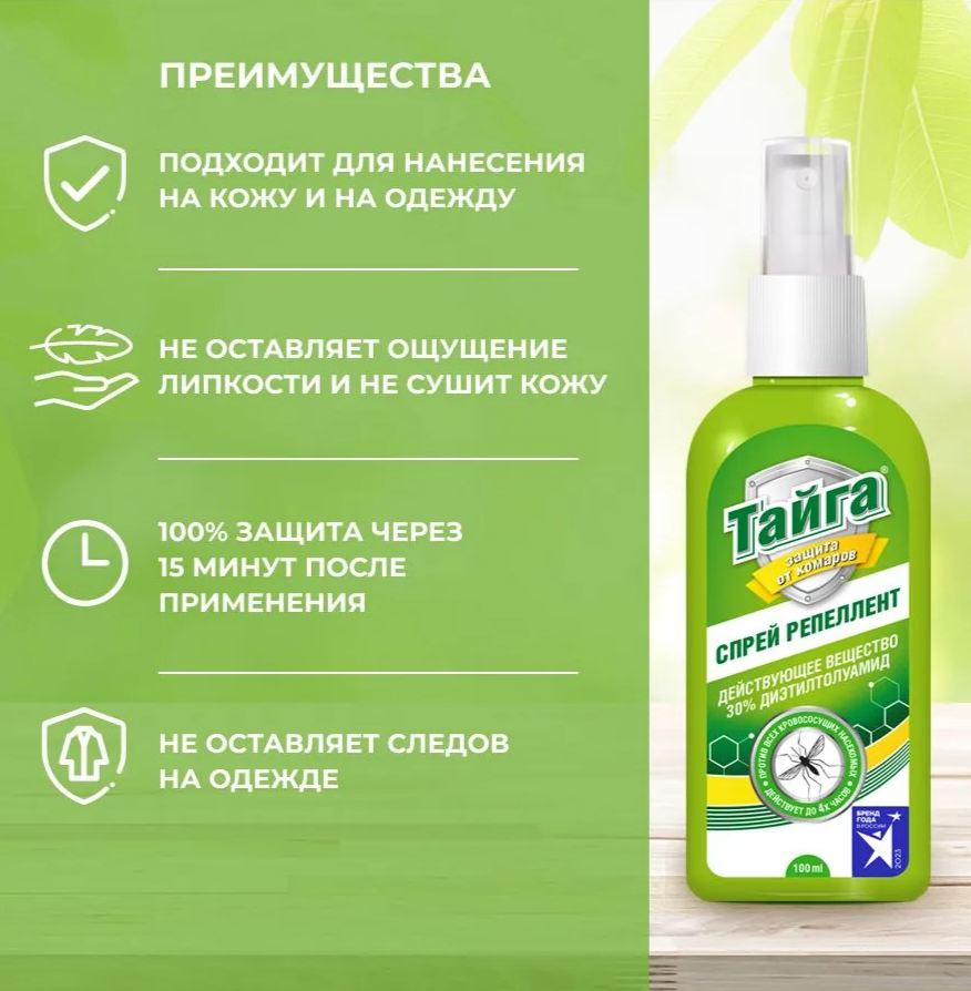 Спрей репеллентный от комаров 100мл НД Тайга ИН-116
